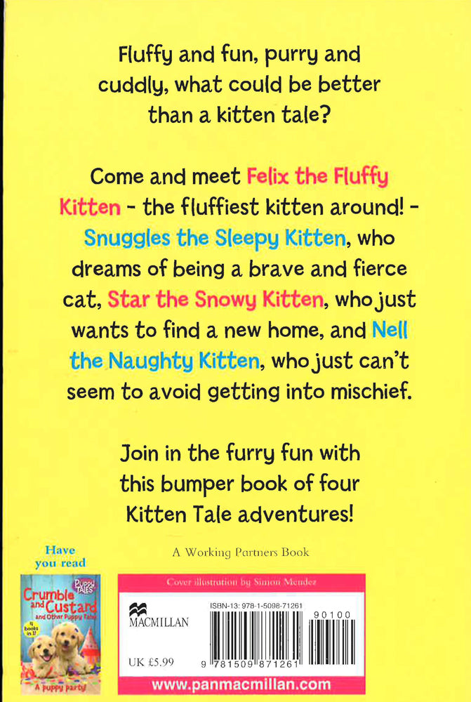 Come and meet some adorable characters in this special collection of Jenny Dale's Kitten Tales illustrated with black and white pictures.Felix the Fluffy Kitten certainly lives up to his name - his fluffy fur gets everywhere - even in the bath! Will Jodie's mum learn to deal with fluff?Nell the Naughty Kitten can't stop making mischief! On the farm where she lives she is always pestering the pigs and disturbing the ducks. Will she ever learn to be a real farm kitten?Meet Snuggles the Sleepy Kitten - he spends all his time snoozing! But in his dreams he's a fierce and brave hero, chasing mice and climbing trees. Will he ever find his real world as exciting as his dreams? When Star the Snowy Kitten is found by Michael it seems like the perfect fit - Michael has always wanted a kitten, and Star really wants a new home. But Michael's mum says he's not old enough to look after a kitten yet. Will he be able to keep Star?Featuring the cutest kittens around, these four feline adventures are sure to become firm favourites with any cat lover!