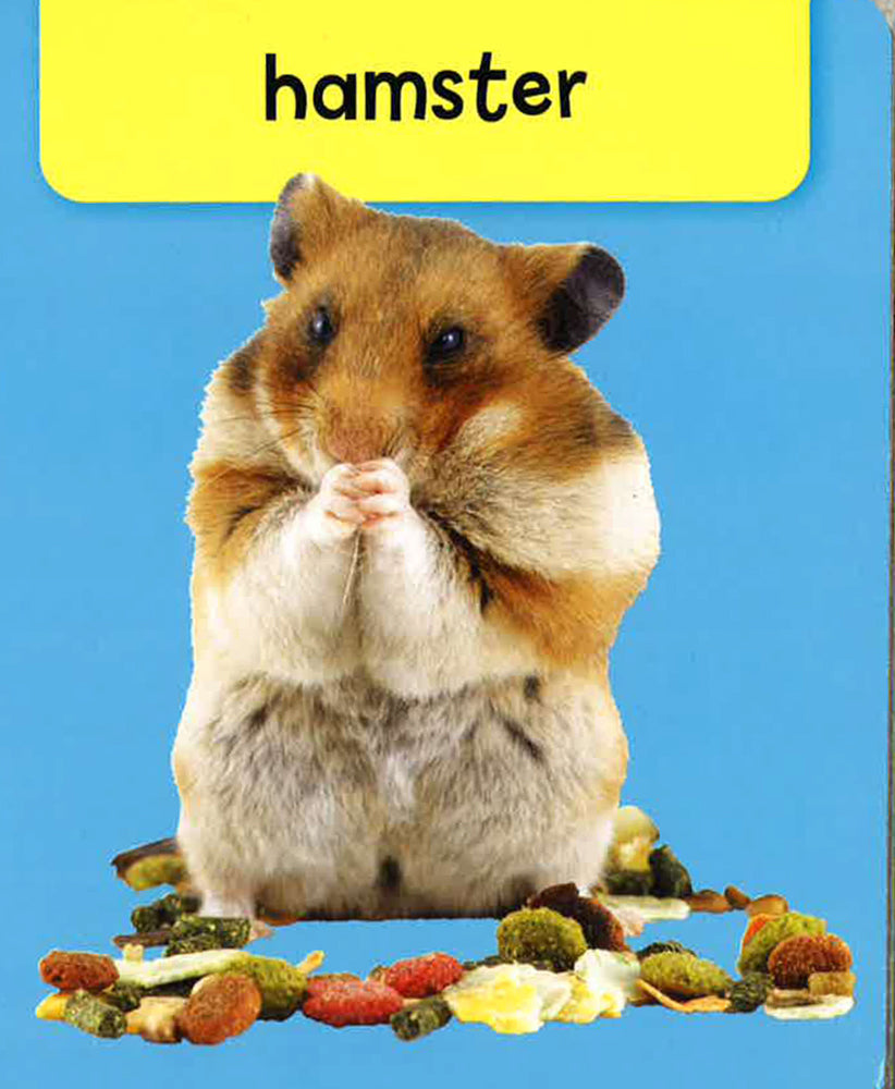 All young children adore pets, and here they will find a whole variety of them, from dazzling goldfish and cute puppies to a hungry hamster and a beautiful budgie. This first word and picture book will delight babies and toddlers, who will love looking at it, either with grown-ups or by themselves. The book's strong, dramatic pictures, and informative and entertaining point-and-say format encourage word skills and recognition. The animals depicted range from the tiniest little mice to larger creatures like horses and ponies, and from commonplace cats and kittens to more exotic pets such as a frog, a parrot and a chinchilla. This soft-to-touch boardbook is specially designed for youngsters and adults to enjoy together, with a wipe-clean cover and sturdy board pages. Visually exciting, enjoyable to use and built to last, this is an ideal introduction to the world of books. Experts agree that preschool children respond more immediately to photographs than to illustrations. This stimulating series is designed to capture a child's attention with bright images and familiar shapes that he or she will recognize. Here they will see cute, floppy-eared rabbits and scaly tortoises. They can compare the sizes of big and little breeds of dog. The final page shows a group of assorted pets together. Meanwhile, adults can point to and repeat the simple captions. This chunky boardbook will bring a smile to any little one's face.