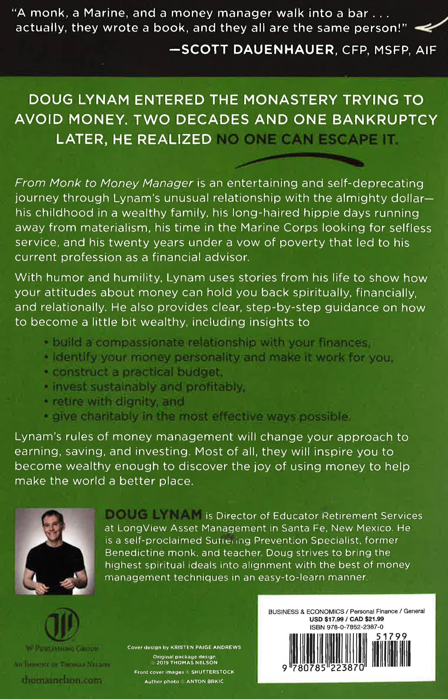 From Monk to Money Manager is an entertaining and self-deprecating journey through Lynam's relationship with the almighty dollar-his childhood in a rich family, the long-haired hippie days running away from materialism, time in the Marine Corps looking for selfless service, and his twenty years in the monastery under a vow of poverty that led to his current profession as a financial advisor. In this unique look at wealth from a spiritual perspective, Lynam shares his belief that God doesn't expect us to live in poverty. The truth is, we need financial peace so we can help others. When money becomes a part of our spiritual practice, used in love and service, it can bring us closer to our highest spiritual ideals.