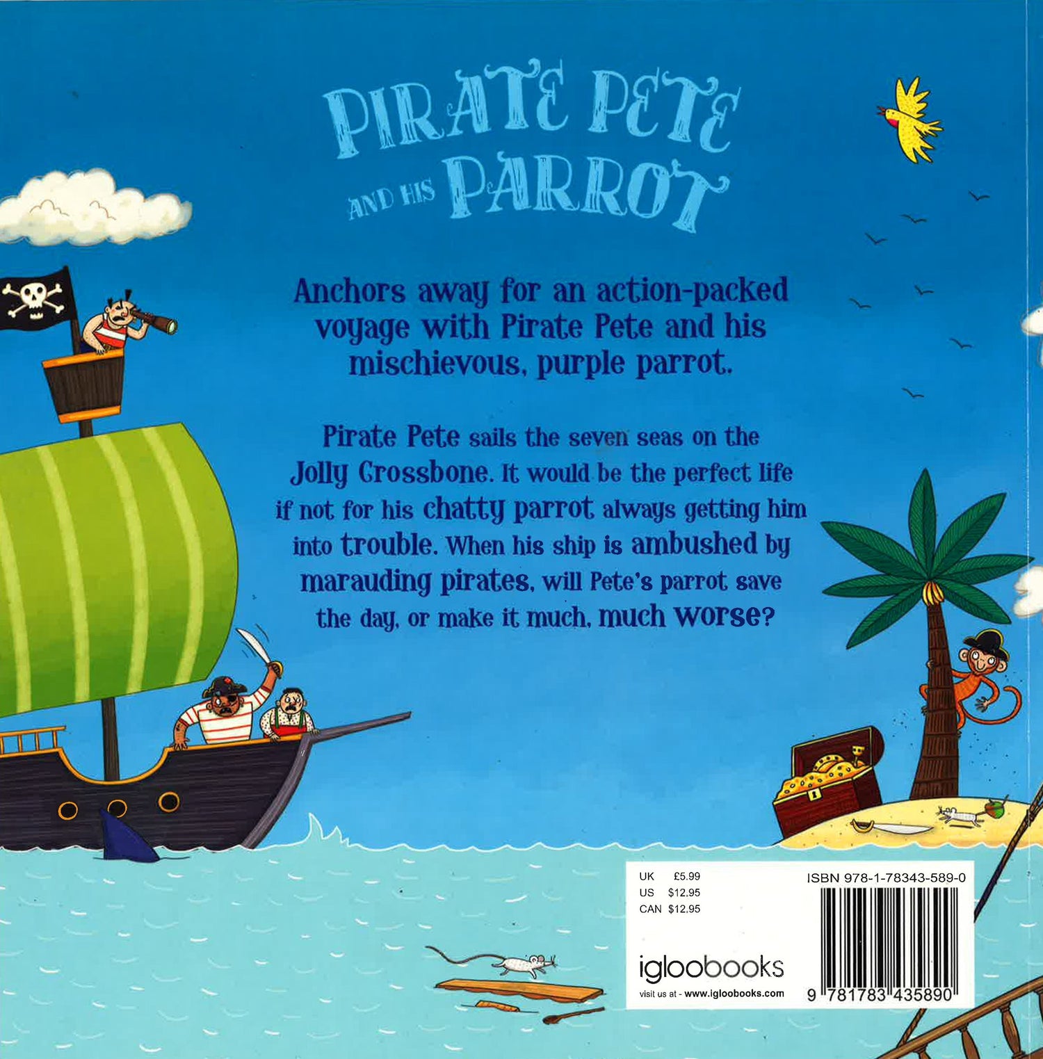 Anchors away for an action-packed voyage with Pirate Pete and his mischievous, purple parrot. Pirate pete sails the seven seas on the Jolly Crossbone. It would be the perfect life if not for his chatty parrot always getting him into trouble. When his ship is ambushed by marauding pirates, will Pete's parrot save the day, mor make it much, much worse?