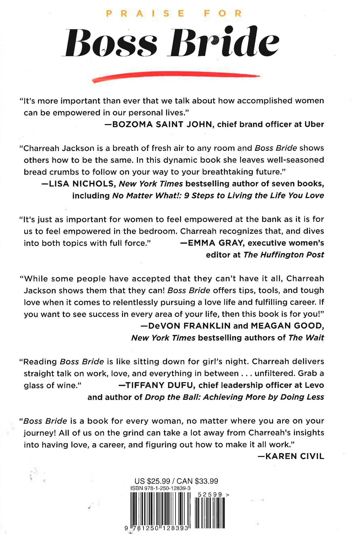 ESSENCE Senior Editor and international dating & career coach Charreah K. Jackson entered 2008 with the plan to gain 200 lbs every two weeks. That's right, she wanted a man by her side for a date at least twice a month. After making her way to New York with a roommate from Craigslist and a coveted magazine job, she knew Sex and the City reruns would not create her love life goals but a strategy would. Her effort worked and a year of active dating landed her in a relationship with a fellow creative. She has spent the last 10 years helping millions of women in their love life as a relationships editor and coach and shares all her insight and research in this conversational book. From organising surprise proposals at Walt Disney World and walking the streets of NY asking women when was their last orgasm to heading to Amsterdam as a speaker and judge for the Europe Dating Awards, to interviewing powerful women like Kerry Washington and Sarah Jessica Parker, Charreah has been at the front lines of dating with a keen eye for what's working for professional women to find and keep great love. Weaving through the complicated world of dating and career, Charreah illustrates how to get what you want in both work and in love with insight from real women including many familiar names. Both relatable and entertaining, each page carries new insight onto an old game. How does changing your name after marriage impact your check and what do hiring managers think when they spot an engagement ring? Packed with tips, tricks, strategies, and testimonies from women across America, she shows you how to become a Boss Bride - and how to stay one long after you get the corner office and walk down the aisle.