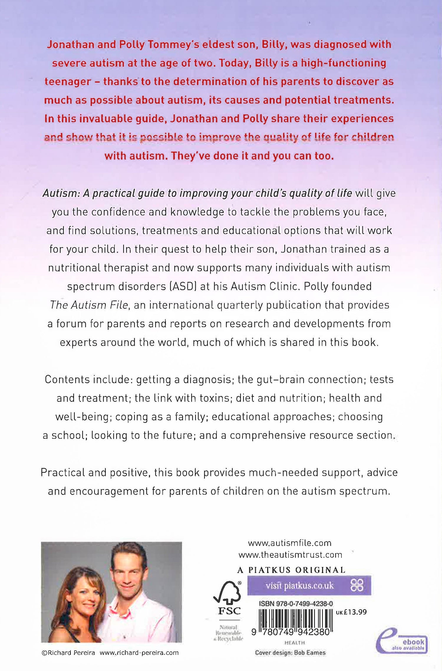 A practical guide for parents which blends the authors' personal experience of bringing up their autistic son as well as Jon's professional experience as a nutritional therapist specialising in autism. Jonathan and Polly Tommey's eldest son, Billy, was diagnosed with severe autism at the age of two. Today, Billy is a high-functioning teenager - thanks to the determination of his parents to discover as much as possible about autism, its causes and potential treatments. They show through their own experience how it is possible to improve the quality of life for children with autism.The book will give parents the confidence and knowledge to tackle the problems they face and find solutions, treatments and educational options that will work for their child. In his quest to help his son, Jonathan trained as a nutritional therapist and now supports many individuals with ASD at his Autism Clinic. His expertise forms an important part of this book.Contents include: getting a diagnosis; the gut-brain connection; tests and treatments; the link with toxins; diet and nutrition; health and wellbeing; coping as a family; educational approaches; choosing a school; looking to the future; and a comprehensive resource section.Practical and positive, this book provides much needed support, advice and encouragement for parents of children on the autism spectrum.