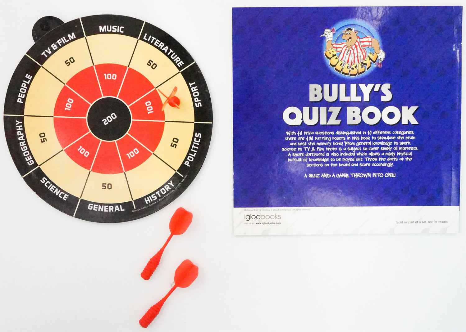 Stay out of the black and in the red with this fun quiz book, plus mini dartboard and darts set. Recreate all the fun of this classic TV show in your own home with a little help from Bully, and see if you can get all the questions correct innnnnn one!