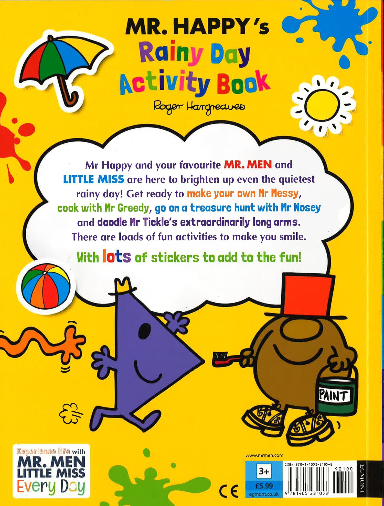 Mr Happy and your favourite Mr Men are here to brighten up even the quietest rainy day! Get ready to make your own Mr Messy, cook with Mr Greedy, go on a treasure hunt with Mr Nosey and doodle Mr Tickle's extraordinarily long arms. This big book of crafts, games, doodles and activities includes drawing games, egg painting, fun recipes, indoor camping, treasure hunts, dressing up ideas, a puddle splashing safari, rain art and much more. With lots of stickers to add to the fun!