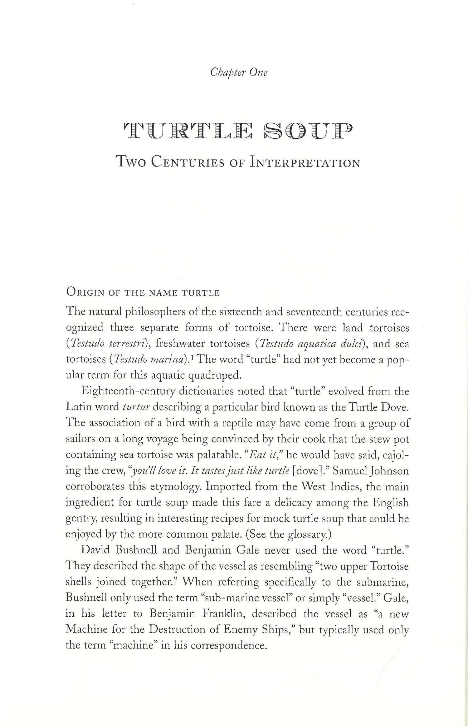 At the onset of the American Revolution, the British expected to quell the rebellion quickly with a show of overwhelming force. In an experiment in asymmetric warfare, David Bushnell created the first submarine vessel designed specifically "for the destruction of vessels of war." On a quiet September night in 1776, sergeant Ezra Lee maneuvered Bushnell's strange little craft out from Manhattan and into the midst of the greatest naval fleet ever assembled in the Americas. Lee's goal was to sink the British flagship HMS Eagle by attaching a powerful explosive to its hull. Although the mission was unsuccessful, Bushnell's concept of submarine warfare was considered by George Washington to have been "an effort of genius."David Bushnell was raised in the town of Saybrook at the mouth of the Connecticut River. More than two centuries later, another Turtle would be launched into the same river within sight of Bushnell's first forays with his vesselduring the summer of 1775. Under the direction of technical arts teacher Frederic J.