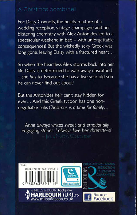 "You're scared.""I am not scared! What's there to be scared of?" A wild weekend in bed for Daisy Connolly and Alex Antonides leads to unforgettable consequences! But the wickedly sexy Greek is long gone, leaving Daisy with a fractured heart. But when Alex storms back into her life Daisy is determined to keep her secret. But the Antonides heir can't stay hidden forever...