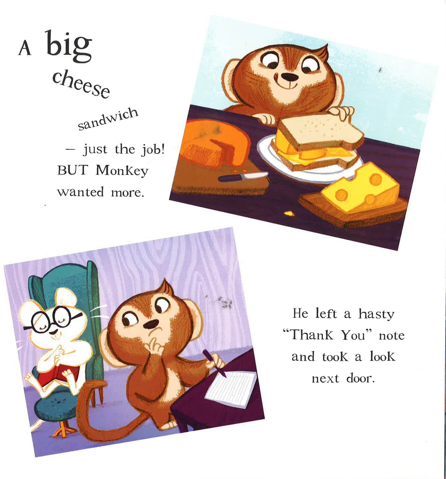 Monkey is hungry and he's sure his animal friends won't mind if he borrows some of their food to make a sandwich. But each friend has such tempting fillings to choose from, that Monkey's snack soon grows taller and taller until it is a `super sandwich'! Will Monkey be able to stay awake to take a bite?