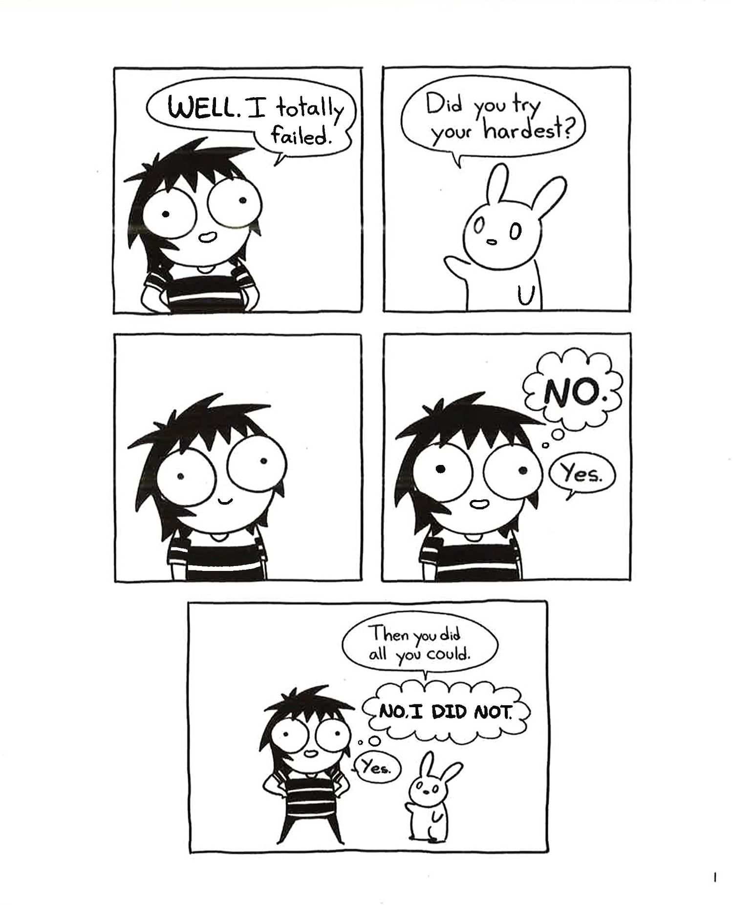 Sarah valiantly struggles with waking up in the morning, being productive, and dealing with social situations. Sarah's Scribbles is the comic strip that follows her life, finding humor in living as an adulting introvert that is at times weird, awkward, and embarrassing.