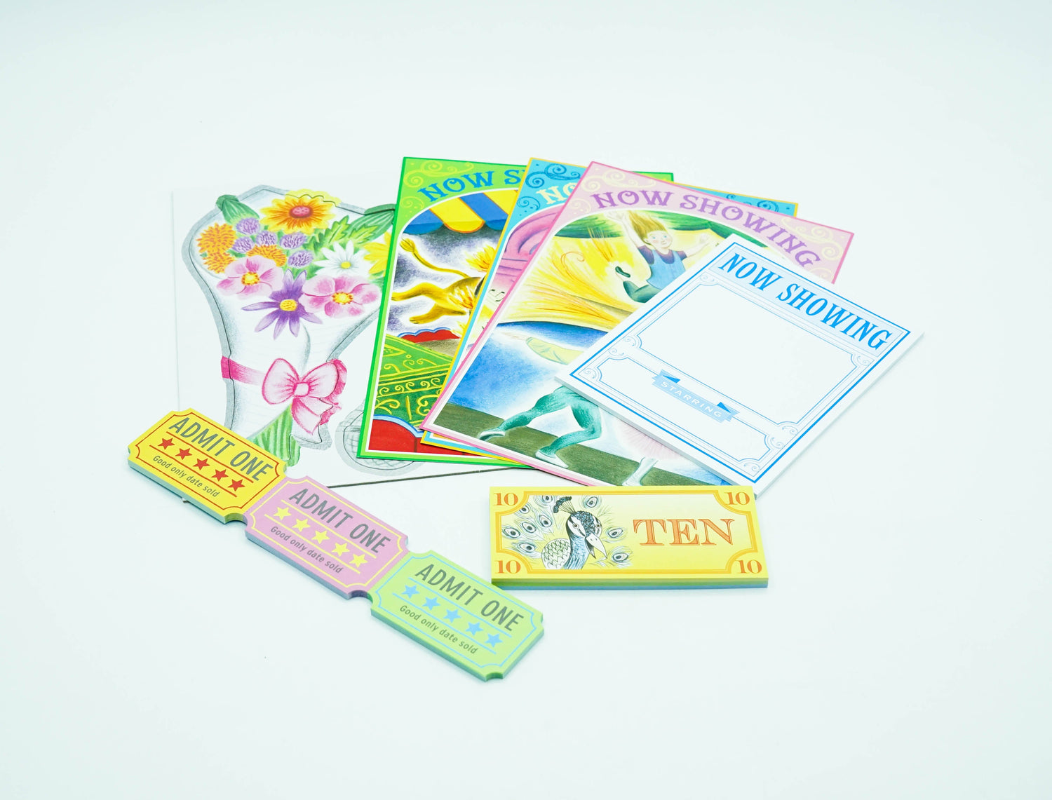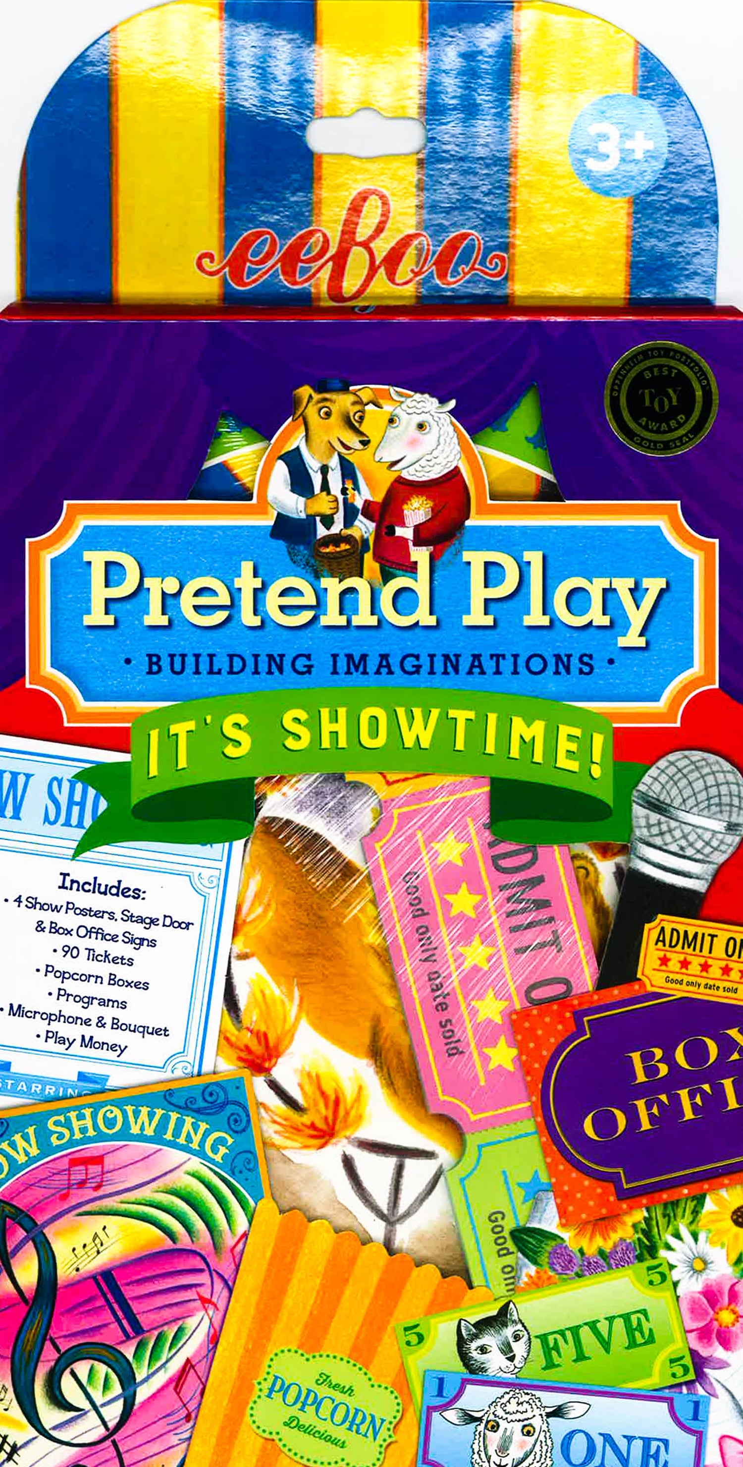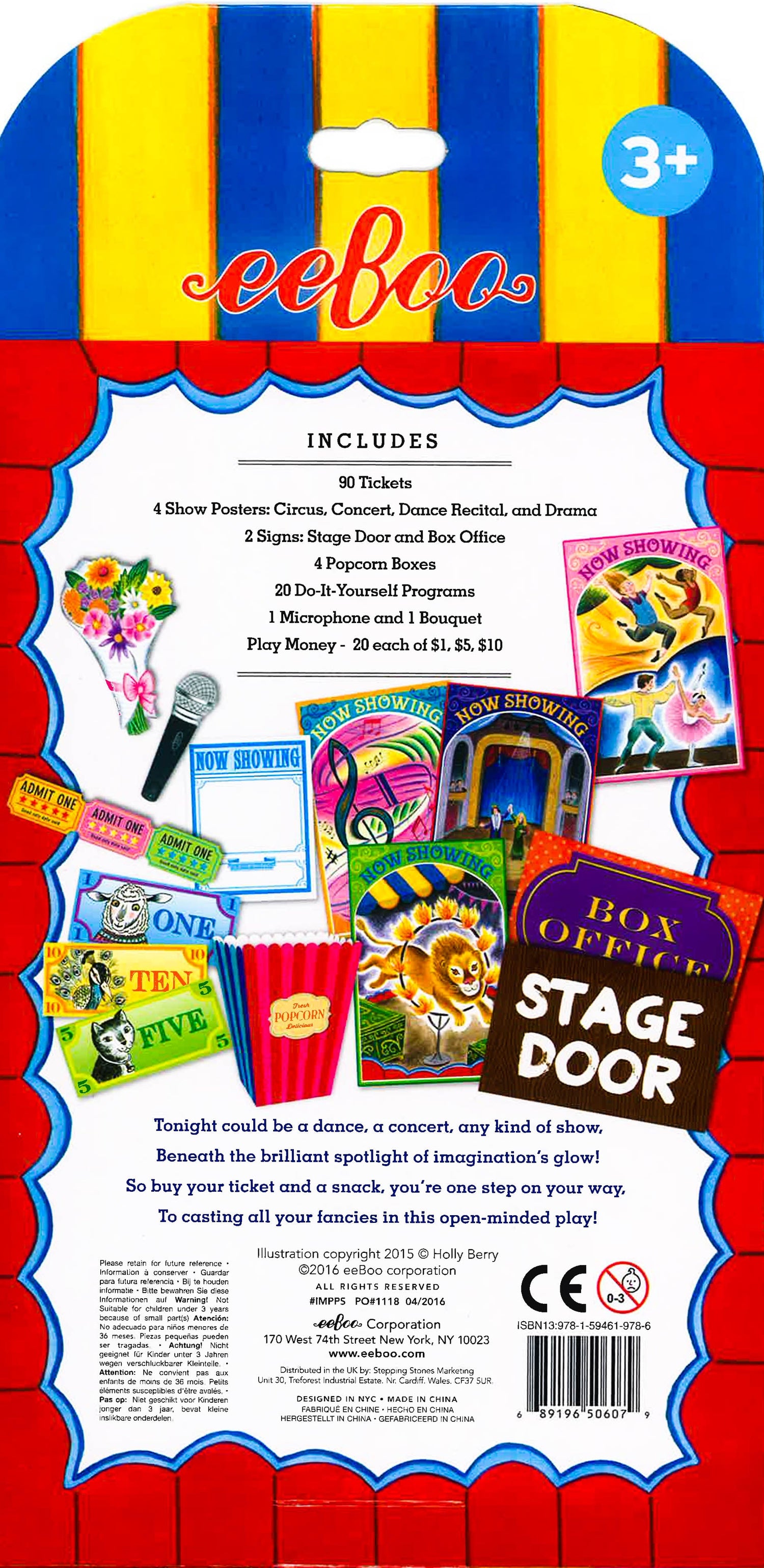 Tonight could be a dance, a concert, any kind of show, with the "It's Showtime" pretend play. This set of movie tickets will help your child's imagination soar. Promotes creativity and imagination development. Illustrated by Holly Berry.