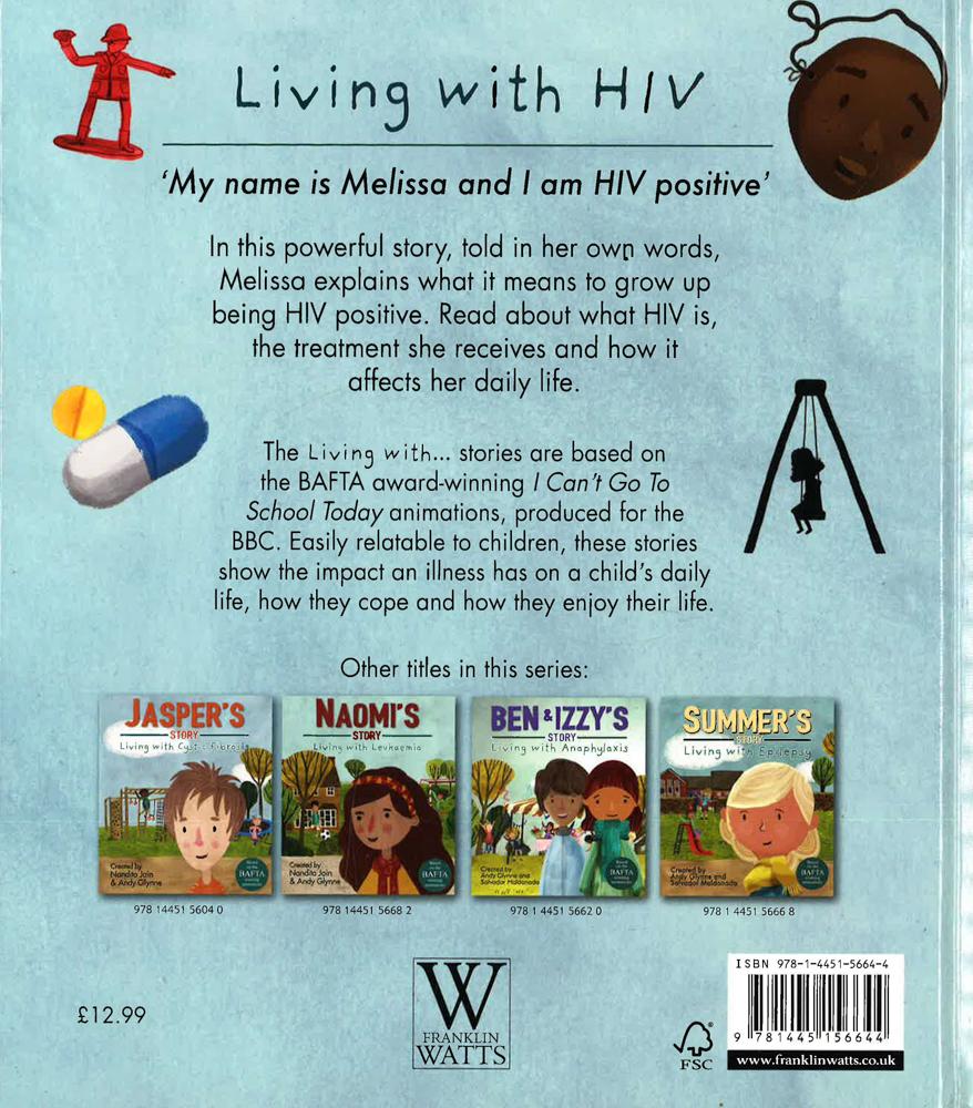 This powerful and eye opening picture book uses the first-person testimony of Melissa, a child living with HIV. Melissa explains what HIV is, how she was diagnosed, the medication she takes and the physical effect of the virus. We read about her fear of telling people and the stigma that made her feel early on that her condition must be kept secret.