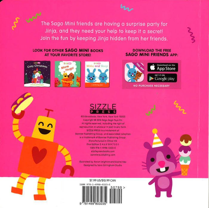 Join the fun as the Sago Mini characters join together to create a surprise party for Jinja. Each big, colorful tab brings readers straight into the action. Everyone is working on a BIG SURPRISE PARTY for Jinja!