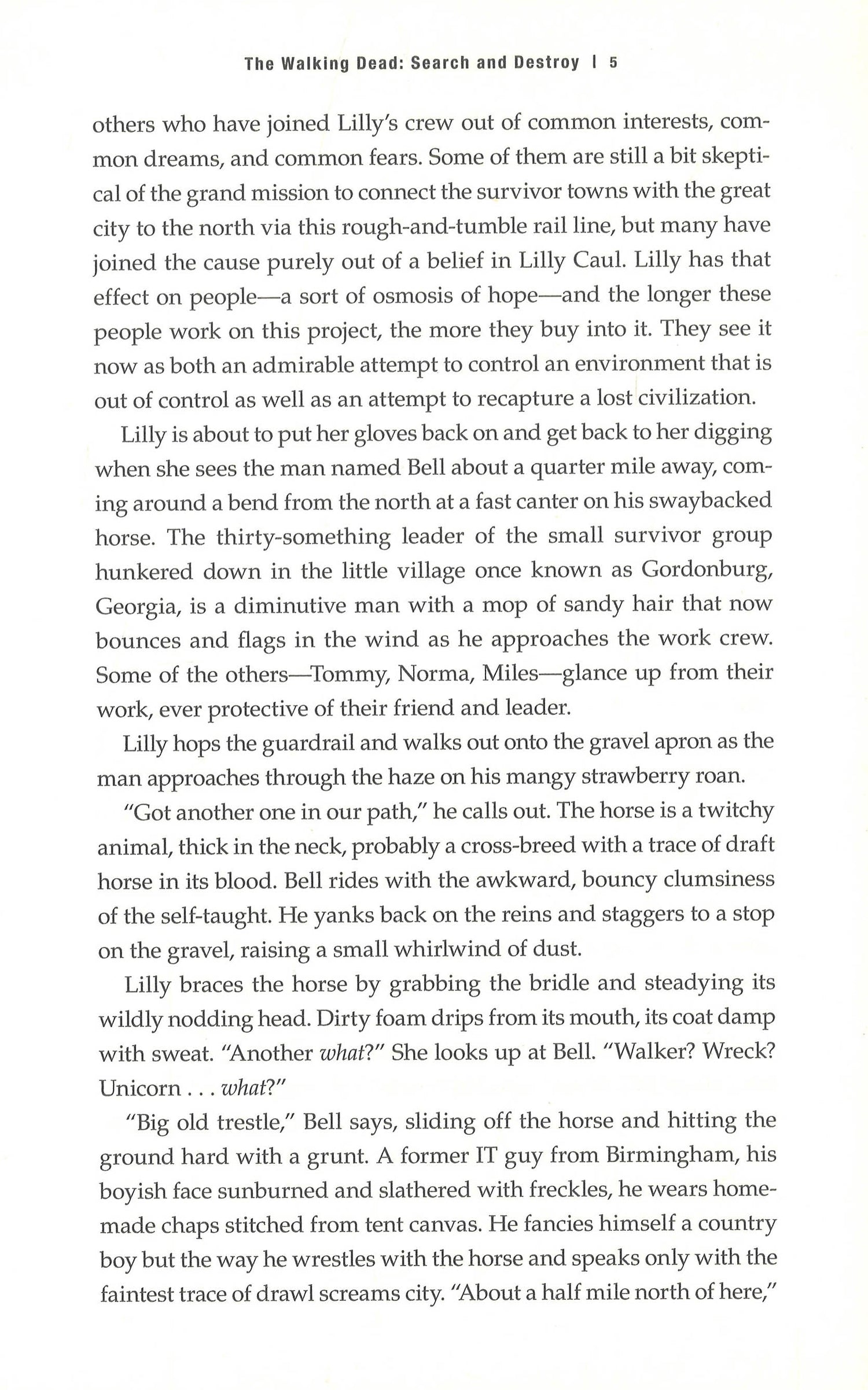 Robert Kirkman's The Walking Dead: Search and Destroy! The latest in Jay Bonansinga's New York Times bestselling series!What could possibly go wrong?For one brief moment, it seems Lilly and her plague-weary band of survivors might just engineer a better tomorrow. Banding together with other small town settlements, they begin a massive project to refurbish the railroad between Woodbury and Atlanta. The safer travel will begin a new post-apocalyptic era of trade, progress, and democracy. Little do they know, however, that trouble is brewing back home …Out of nowhere, a brutal new faction has attacked Woodbury while Lilly and the others have been off repairing the railroad. Now the barricades are burning. Adults have been murdered, children kidnapped. But why? Why subject innocent survivors to such a random, unprovoked assault?Lilly Caul and her ragtag posse of rescuers will soon discover the chilling answers to these questions and more as they launch a desperate mission to save the kidnapped children. But along the way, the dark odyssey will take them into a nightmarish series of traps and hellish encounters with incomprehensible swarms of undead. And as always, in the world of the Walking Dead, the walkers will prove to be the least of Lilly’s problems. It’s what the human adversaries have in store for her that will provide Lilly’s greatest challenge yet.