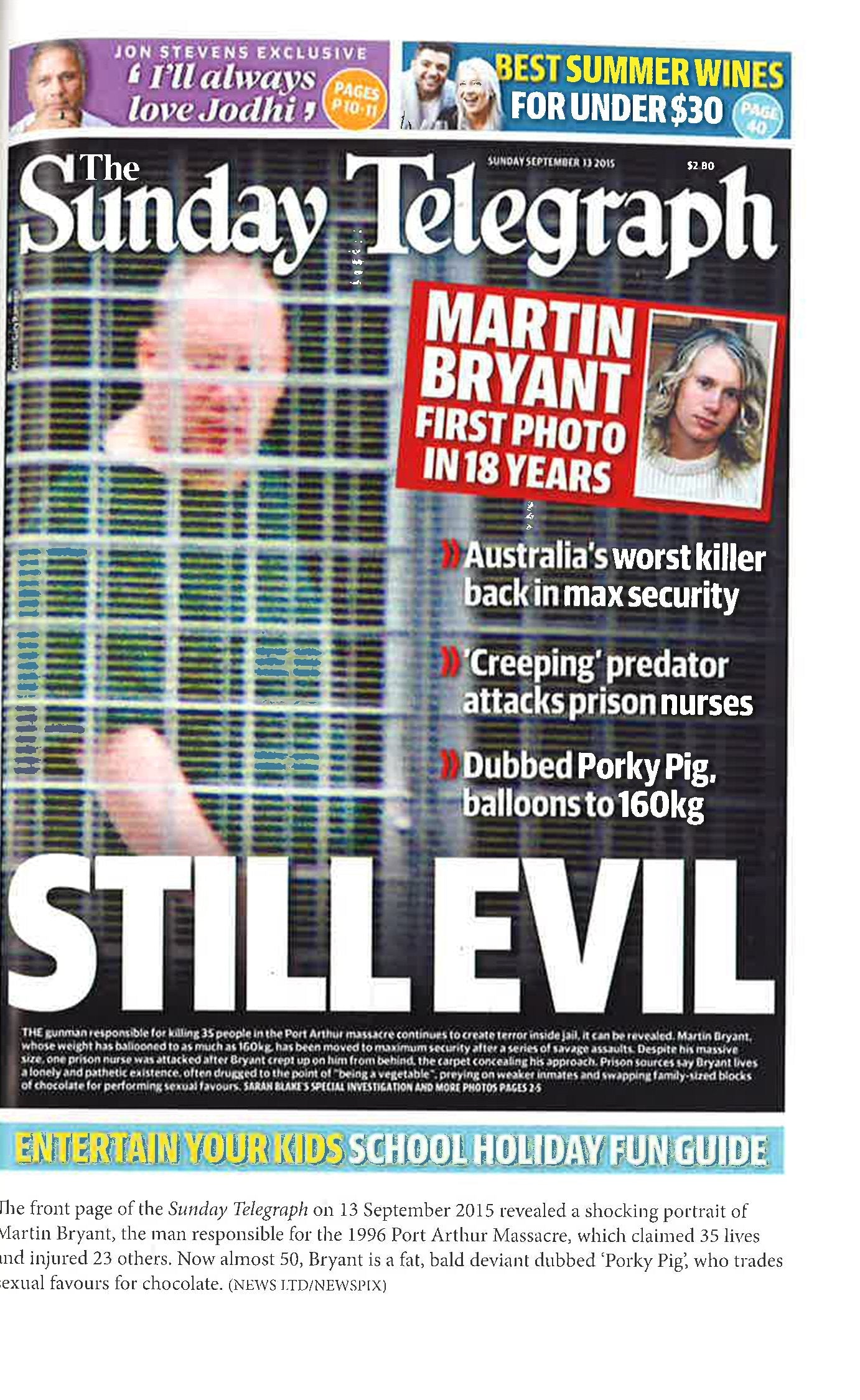 Bryant - who killed 35 people and injured another 23 at Port Arthur in 1996 - is a 160 kg slob who trades Mars Bars for protection in Risdon Prison. Nineteen years after Australia's worst massacre, his blond hair is gone, and so is his self-righteous smirk . . . but he is as evil as ever. Bryant has attacked several jail workers and has showed no remorse for the crimes that shook the nation. He is just one of the killers you will meet inAustralia's Toughest Prisons- Inmates.