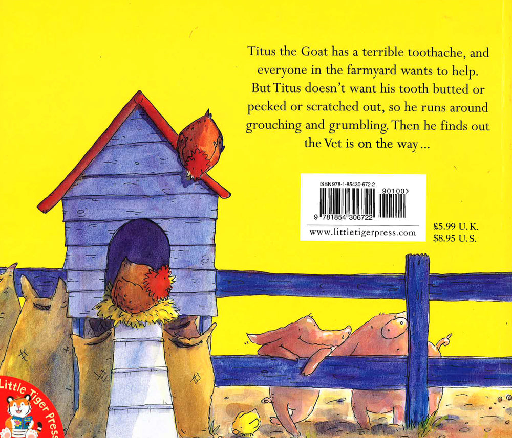 Titus the goat has terrible toothache. All the farmyard animals are happy to help him get rid of his troublesome tooth, but poor Titus doesn't want his tooth pecked, butted or pulled out. Then Sadie the Hen provides shocking news - the vet is coming. Titus the Goat has a terrible toothache. All the farmyard animals are happy to help him get rid of his troublesome tooth, but poor Titus doesn't want his tooth pecked, butted or pulled out. He grouches and grumbles and grouches and grumbles until Sadie the Hen provides him with some shocking news. The farmer has called The Vet! This lively, humorous tale by Linda Jennings is perfectly complemented by Gwyneth Williamson's zany illustrations.