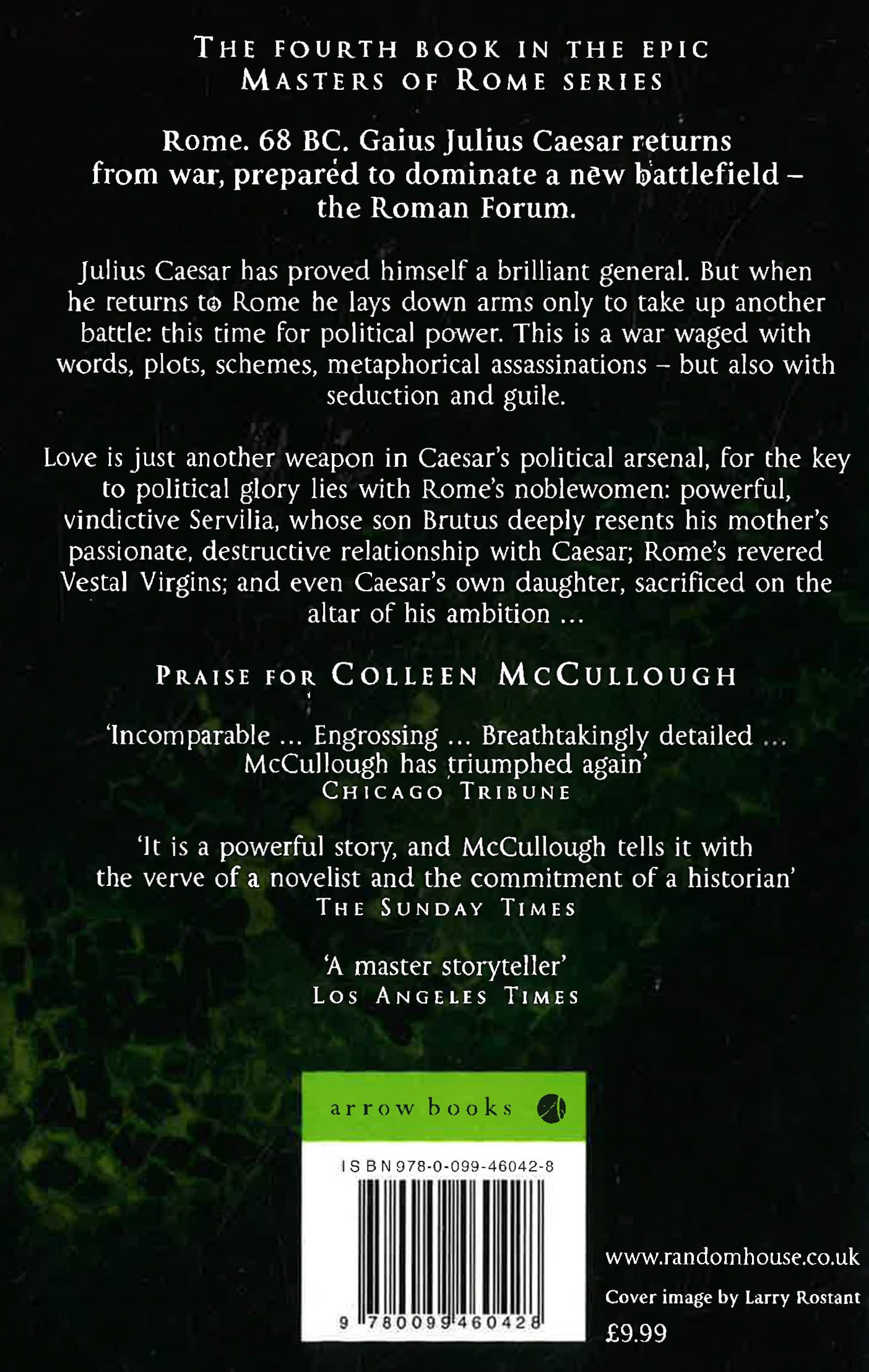 Tells the story of Gaius Julius Caesar's relentless rise to prominence, beginning with his return to Rome in 68 BC. He comes prepared to dominate a new battlefield - the Roman Forum. But his victories are not limited to the Forum: he also conquers Rome's noble women.Book four in the epic Masters of Rome series.Rome. 68 BC. Julius Caesar has proved himself a brilliant general. But when he returns to Rome he lays down arms only to take up another battle: this time for political power. This is a war waged with words, plots, schemes, metaphotical assassinations - but also with seduction and guile.Love is just another weapon in Caesar's political arsenal, for the key to political glory lies with Rome's noblewomen: powerful, vindictive Servilia, whose son Brutus deeply resents his mother's passionate, destructive relationhshiop with Caesar; Rome's revered Vestal Virgins; and even Caesar's own daughter, sacrificed on the altar of his ambition.