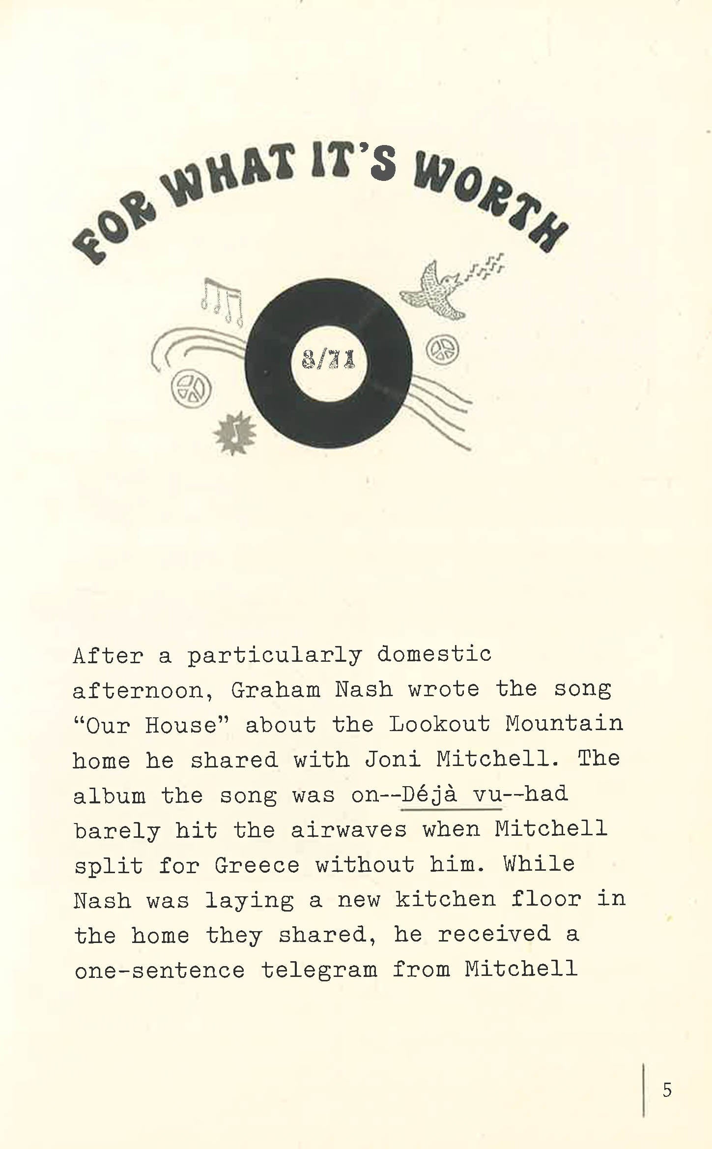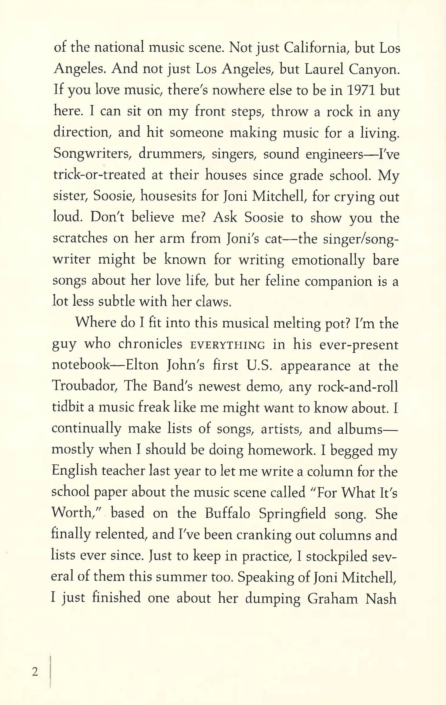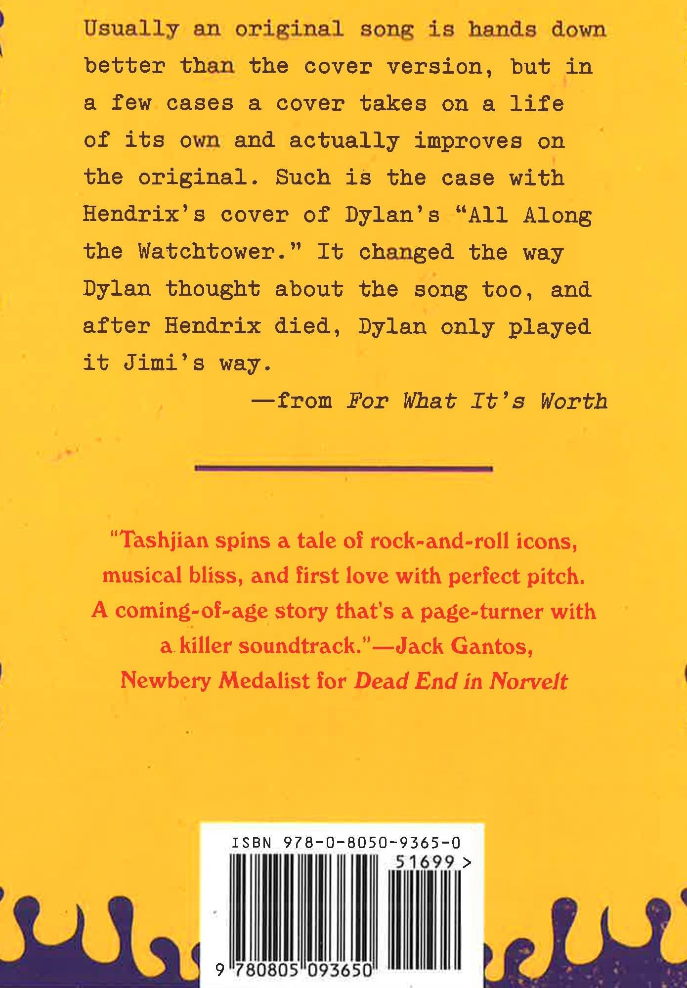 The year is 1971. Quinn, a fourteen-year-old music "encyclopedia," looks forward to writing his music column "For What It's Worth," playing guitar with his band, and hanging out with his first-ever girlfriend, Caroline. But then a draft dodger in need of help shows up, and Quinn is suddenly faced with some tough decisions. If that weren't enough, Quinn starts receiving cryptic messages from Jim Morrison, Janis Joplin, and Jimi Hendrix via his Ouija board, and realizes he's in over his head. Fortunately for Quinn, Caroline helps him get a grip on reality. In her wit-smart style, Janet Tashjian explores a compelling time period through the winning voice of a list-making, music-adoring teen.