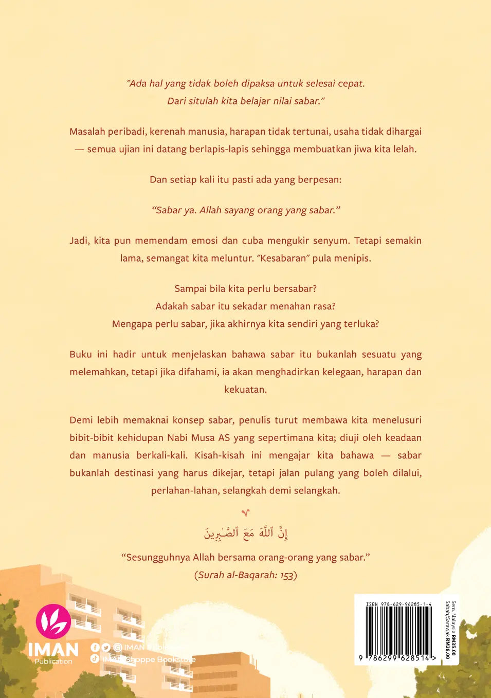 Demi lebih memaknai konsep sabar, penulis turut membawa kita menelusuri bibit-bibit kehidupan Nabi Musa AS yang sepertimana kita; diuji oleh keadaan dan manusia berkali-kali. Kisah-kisah ini mengajar kita bahawa—sabar bukanlah destinasi yang harus dikejar, tetapi jalan pulang yang boleh dilalui, perlahan-lahan, selangkah demi selangkah.