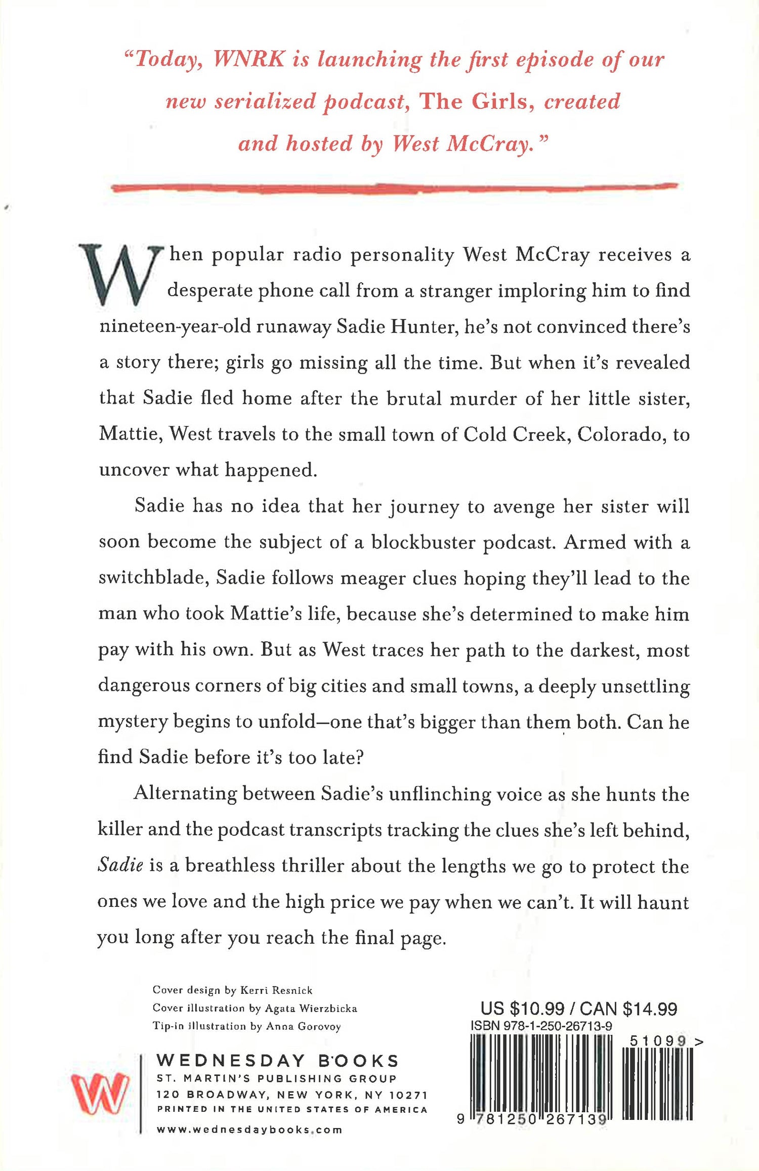 Sadie has no idea that her journey to avenge her sister will soon become the subject of a blockbuster podcast. Armed with a switchblade, Sadie follows meager clues hoping they'll lead to the man who took Mattie's life, because she's determined to make him pay with his own. But as West traces her path to the darkest, most dangerous corners of big cities and small towns, a deeply unsettling mystery begins to unfold--one that's bigger than them both. Can he find Sadie before it's too late?