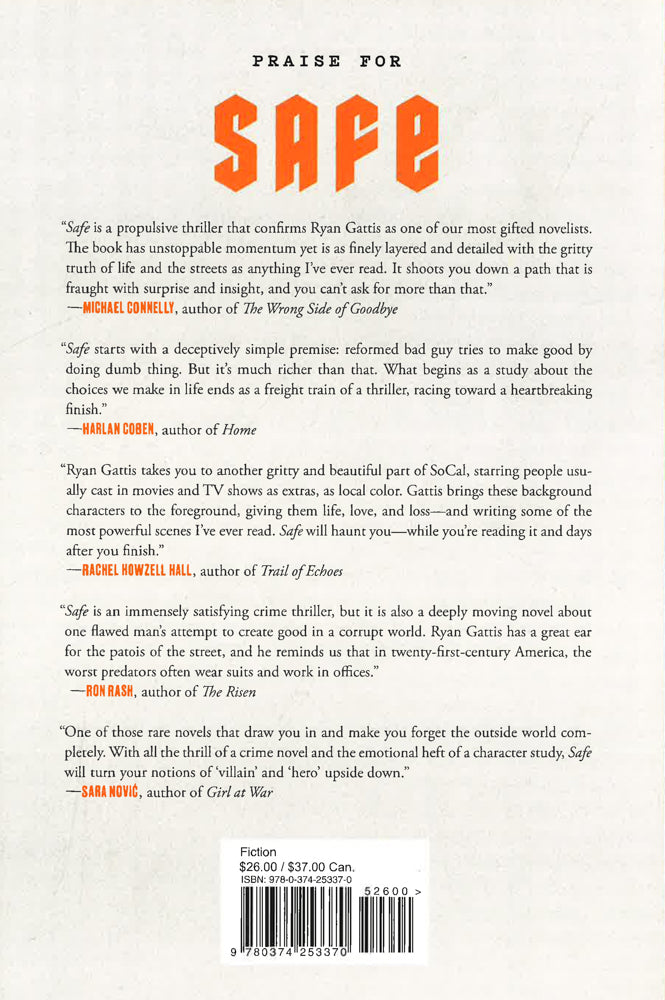 Ryan Gattis' gritty, fast-paced thriller, Safe, hurtles readers toward a shocking conclusion that asks the toughest question of all: how far would you go to protect the ones you love?Ricky ?Ghost? Mendoza, Jr. is trying to be good. In recovery and working as a freelance safecracker for the DEA, the FBI, and any other government agency willing to pay him, Ghost is determined to live clean for the rest of his days. And maybe he could, if the most important person in his life hadn?t gotten into serious financial trouble. To fix it, all Ghost has to do is crack a safe and steal drug money from under the noses of the gangs and the Feds without getting caught. Or killed.Rudy ?Glasses? Reyes runs drugs and cleans up messes for the baddest of bad men. When Ghost hits one of his safes, Glasses must hunt him down or be held accountable. But Glasses is worried about more than just money. The heist puts everything in his life at risk - his livelihood, his freedom, even his family.