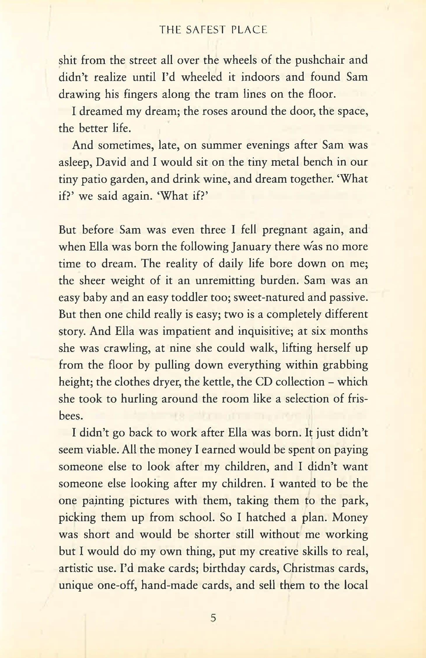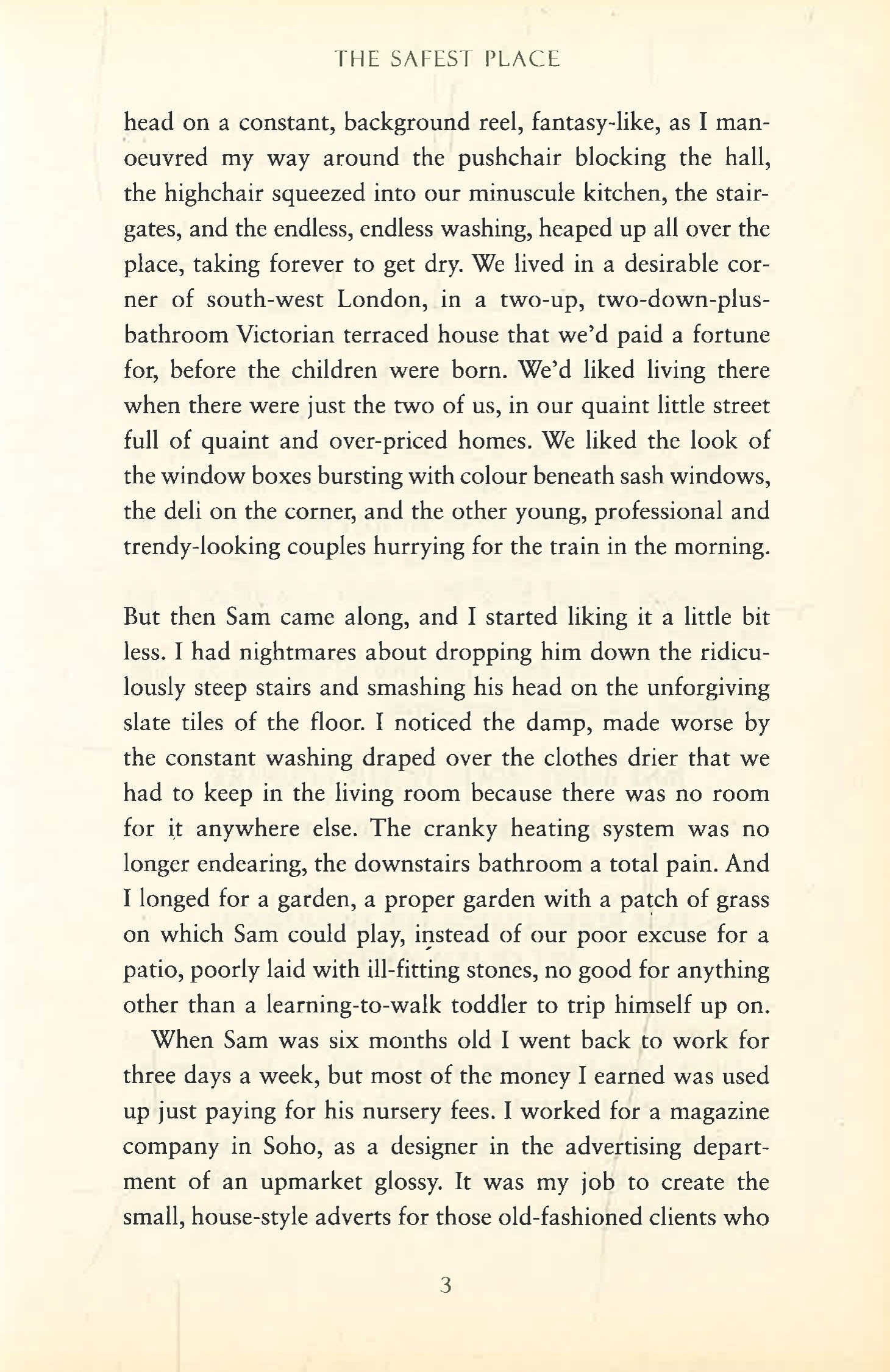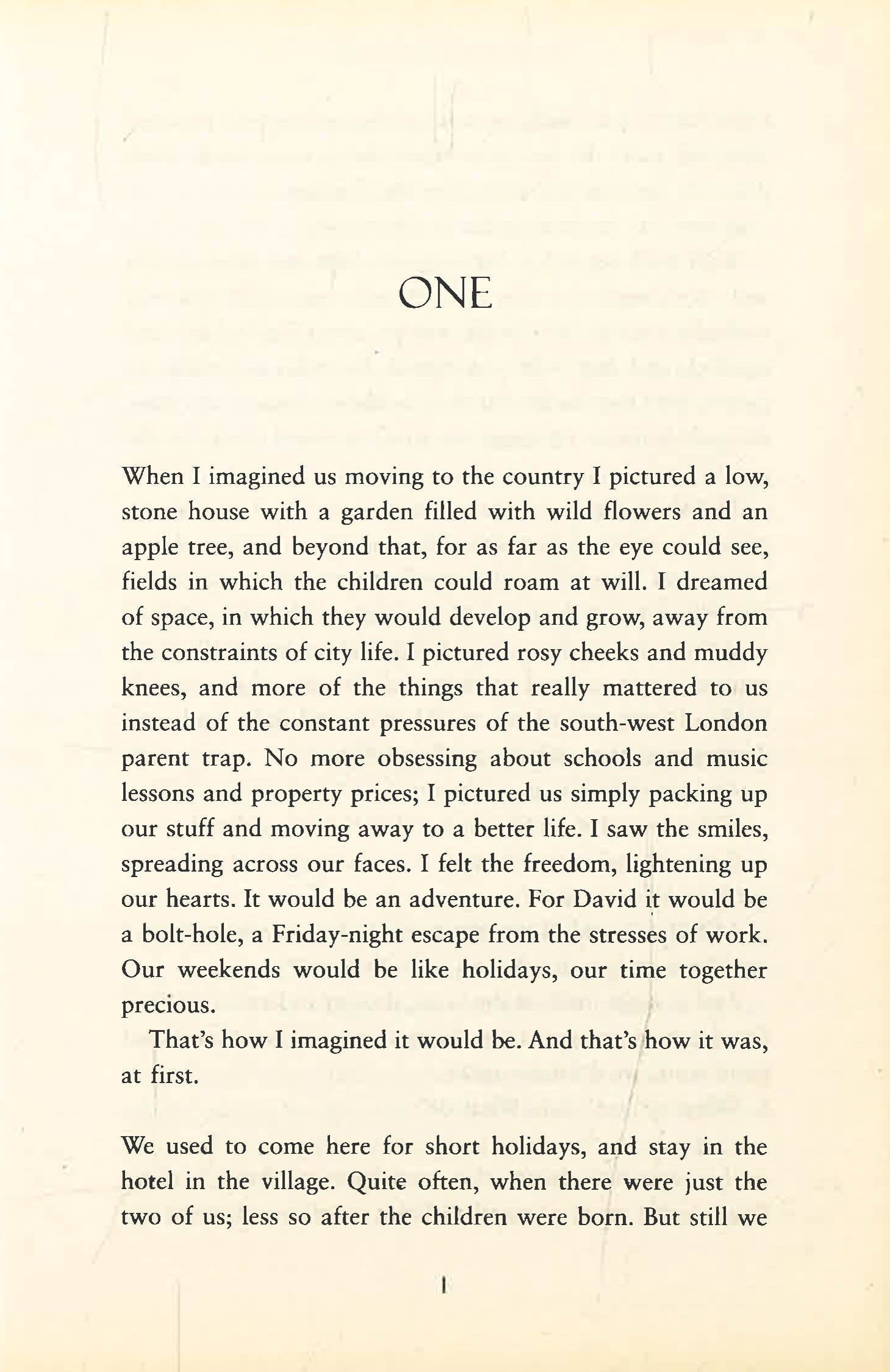 How cosy I made it sound. How easy. Sam and Ella both looked at me for a moment, their faces a mixture of apprehension and wistfulness. I smiled back at them indulgently, feeling so pleased with myself. Now, I look back and I want to grab my old self by the shoulders and shake, hard. I want to slap the smug smile off my face. I wasn't just complacent; I was blind.