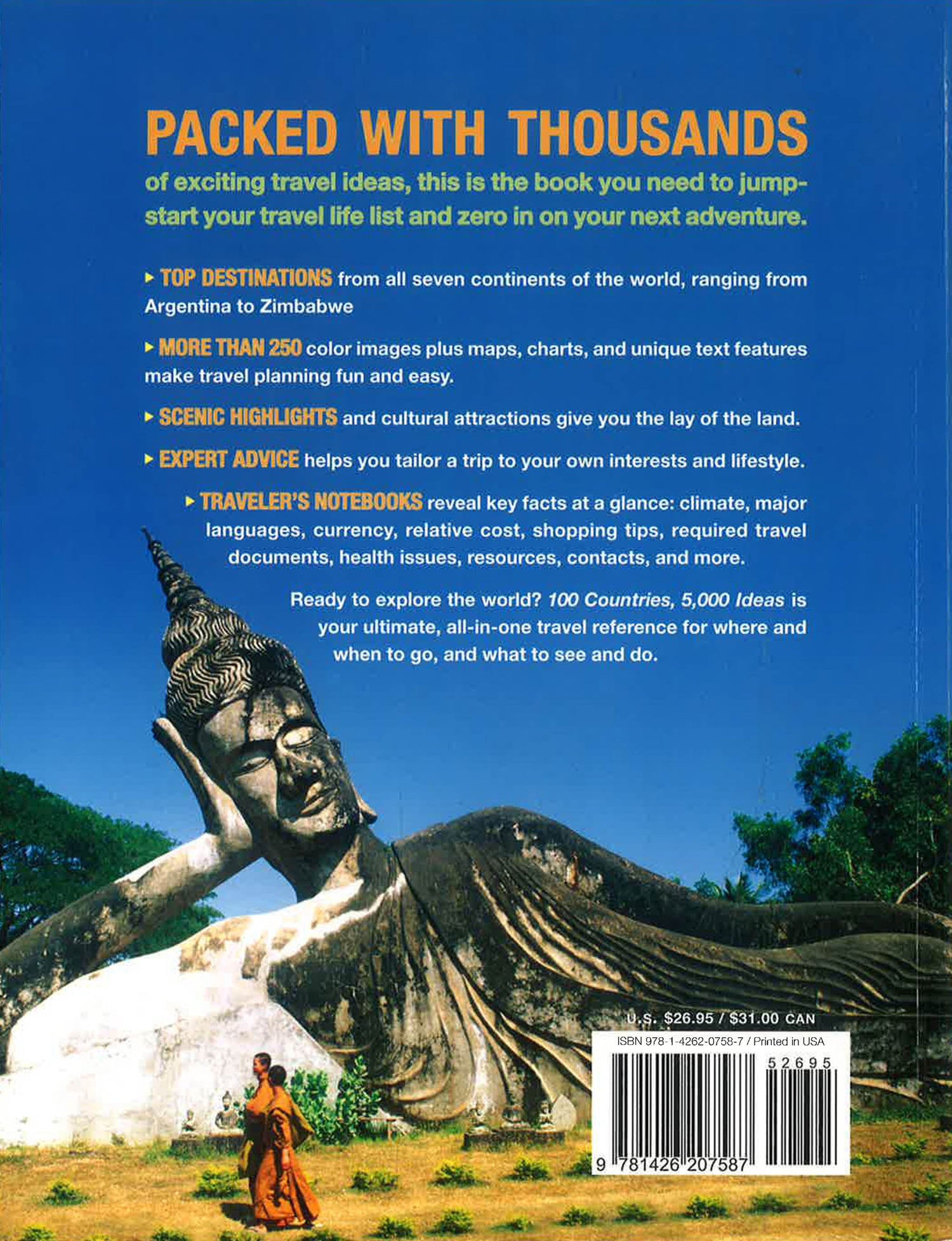 Following up on the enormous success of the Journeys of a Lifetime series of travel gift books, National Geographic presents 100 Countries, 5000 Ideas - a large format, lavishly illustrated paperback travel planner.