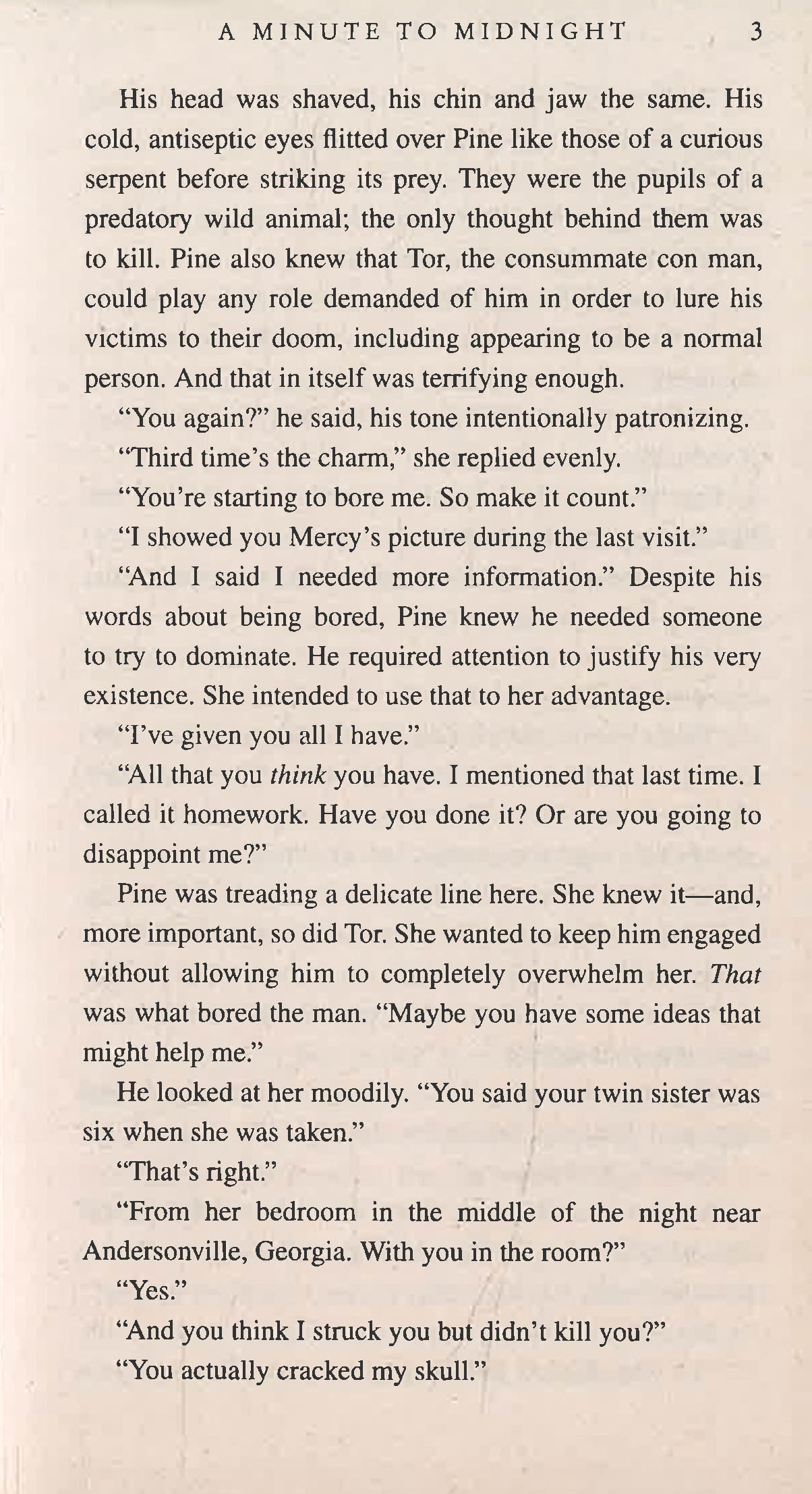 FBI Agent Atlee Pine's life was never the same after her twin sister Mercy was kidnapped -- and likely killed -- thirty years ago. After a lifetime of torturous uncertainty, Atlee's unresolved anger finally gets the better of her on the job, and she finds she has to deal with the demons of her past if she wants to remain with the FBI.