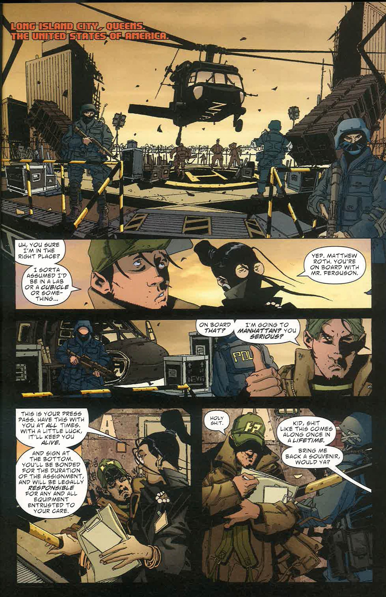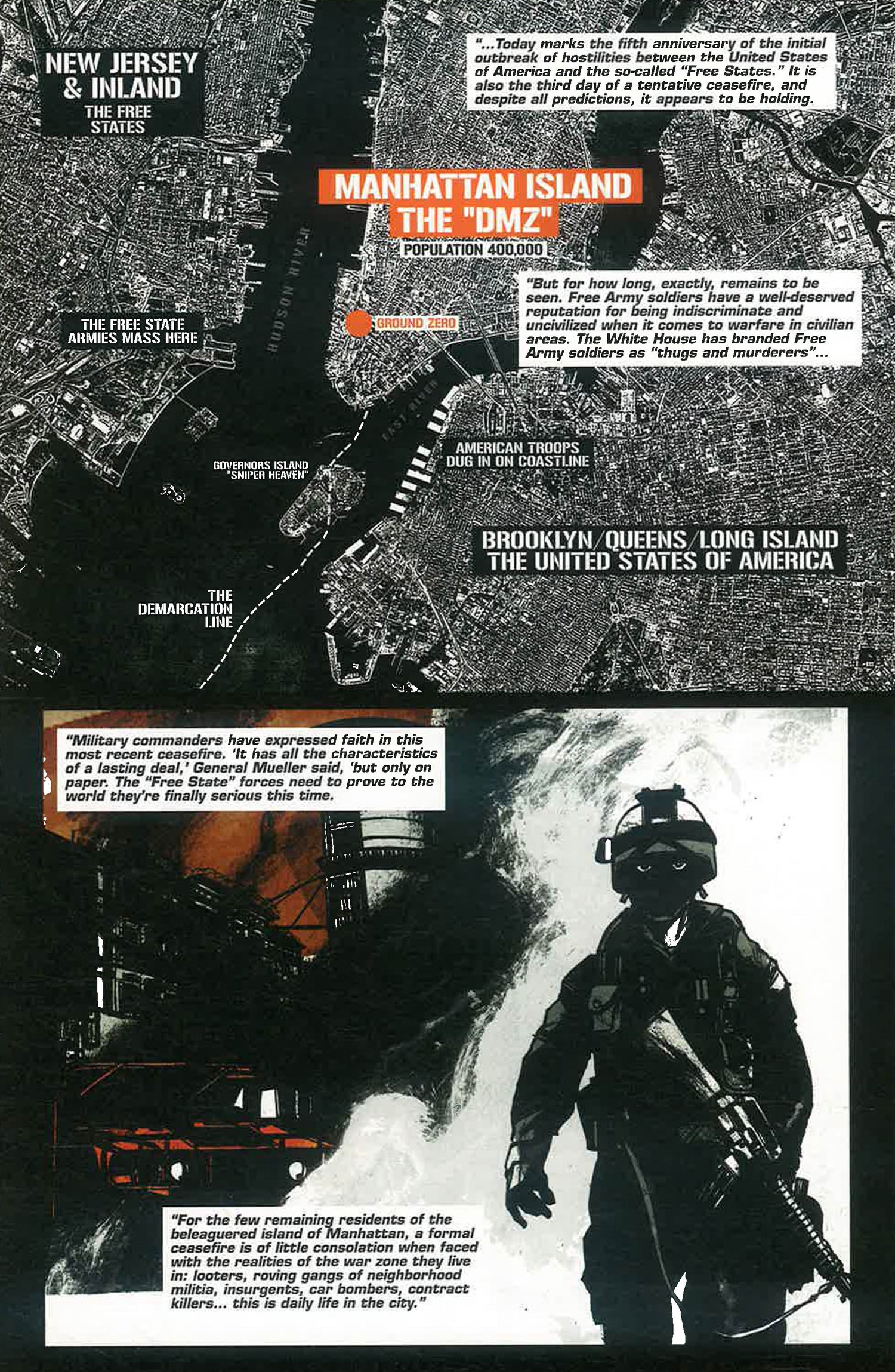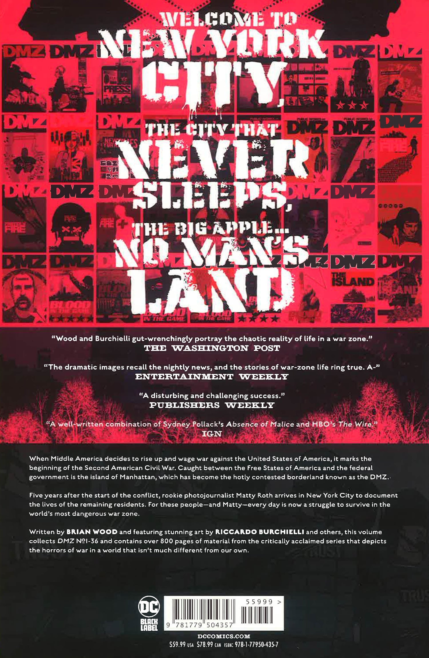 In the near future, the United States has been plunged into a second civil war -- Manhattan, or as it's now known, the DMZ, has become one of the most dangerous cities in the world, making it the perfect place for aspiring photojournalist Matty Roth to be.