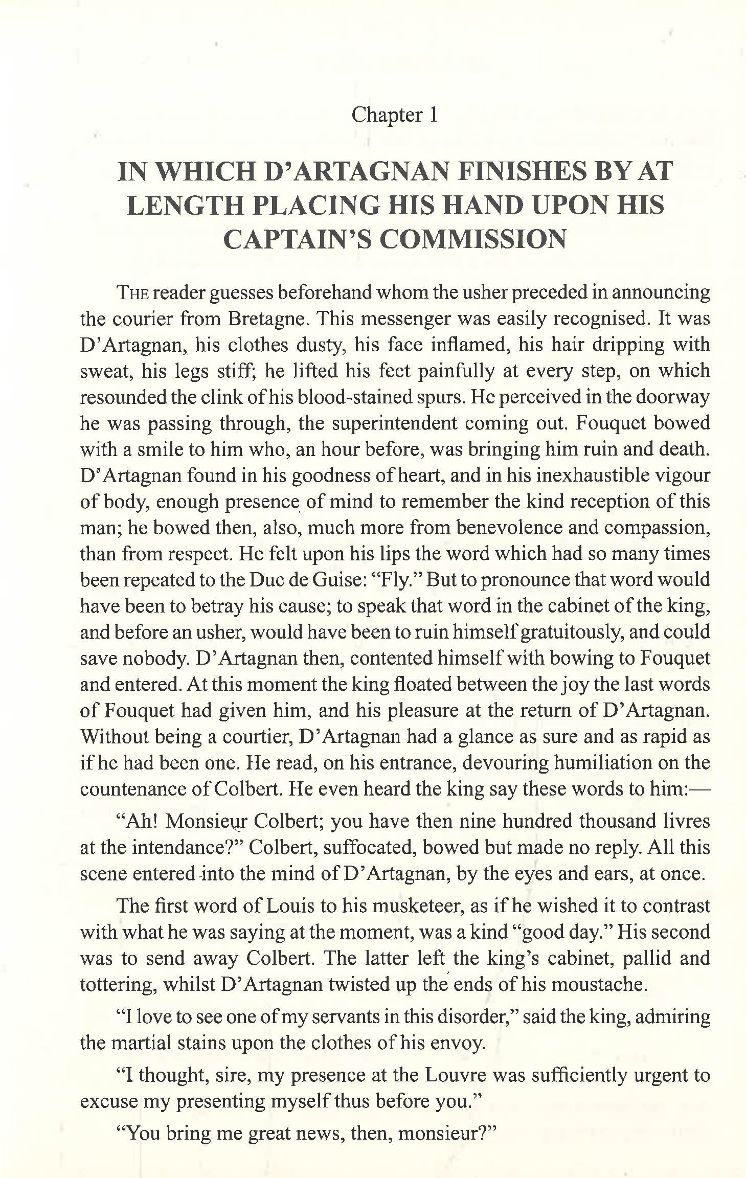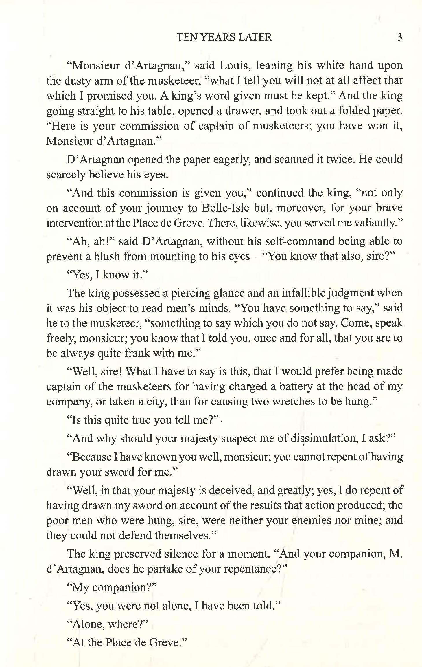 Ten Years Later by Alexandre Dumas continues the romantic saga of the musketeers. With the Cardinal Mazarin dead, and Ann of Austria relegated to the background, France sees the emergence of Louis XIV and the intrigues of new characters that sets the tone and adventures for this tale.