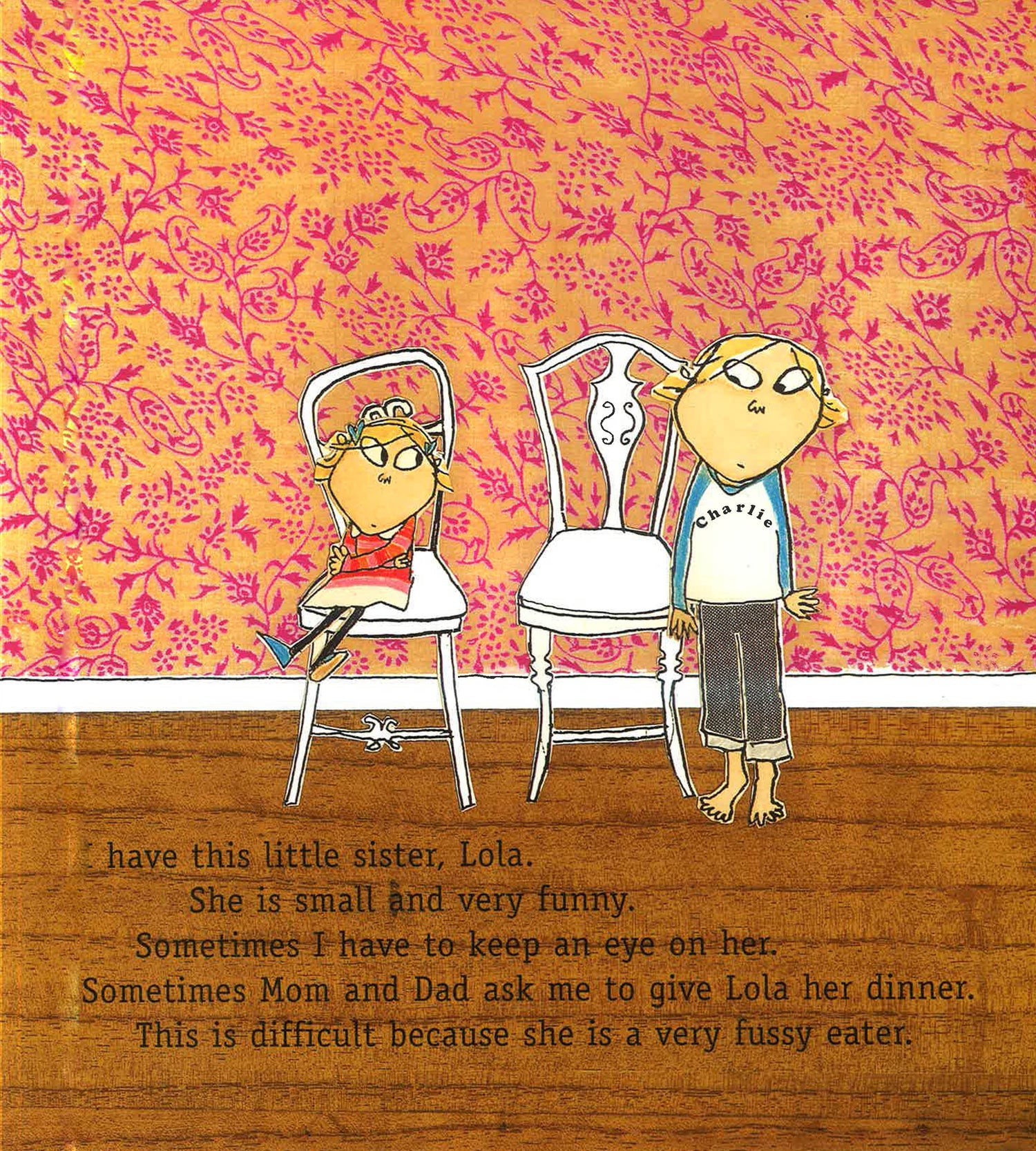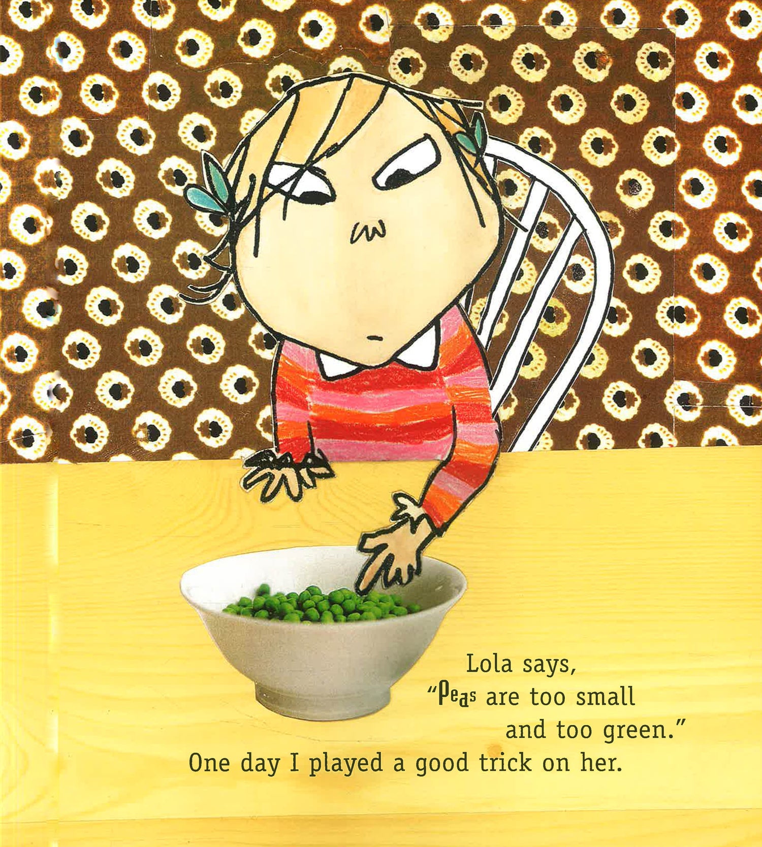 Lola is a fussy eater. A very fussy eater. She won't eat her carrots (until her brother Charlie reveals that they're orange twiglets from Jupiter). She won't eat her mashed potatoes (until Charlie explains that they're cloud fluff from the pointiest peak of Mount Fuji). There are many things Lola won't eat, including -- and especially --tomatoes. Or will she? Two endearing siblings star in a witty story about the triumph of imagination over proclivity.