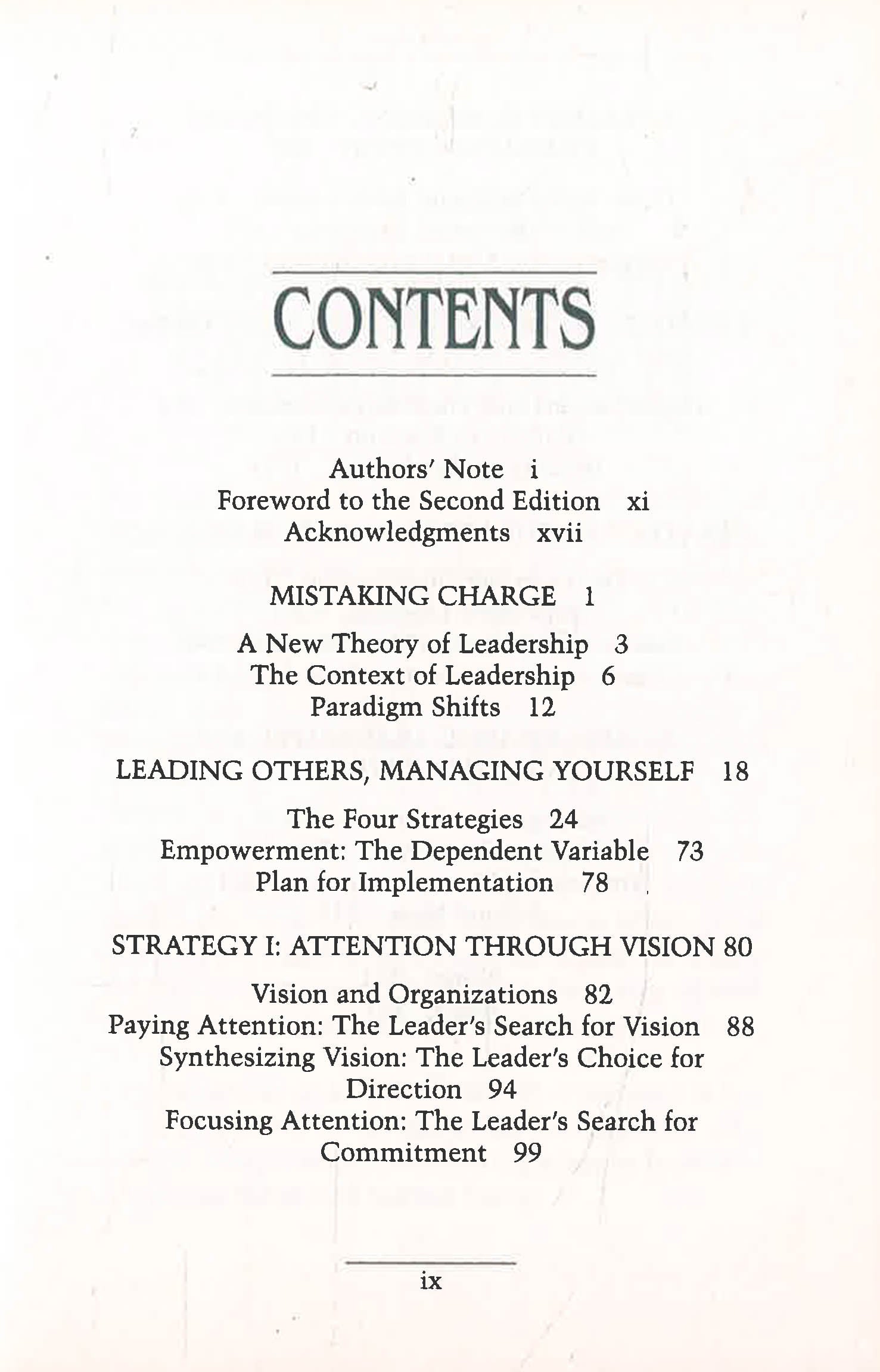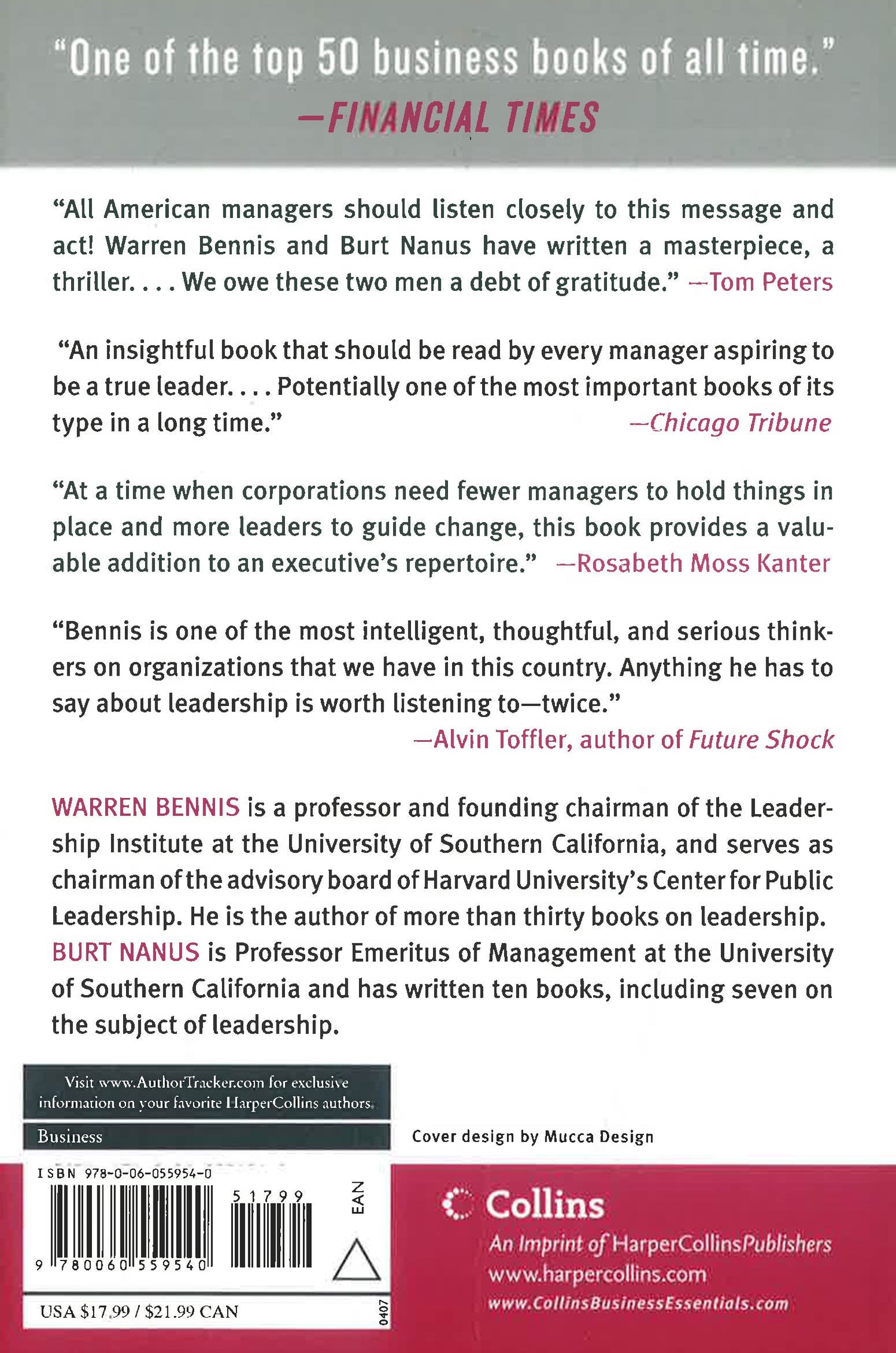 In this illuminating study of corporate America's most critical issue—leadership—world-renowned leadership guru Warren Bennis and his co-author Burt Nanus reveal the four key principles every manager should know: Attention Through Vision, Meaning Through Communication, Trust Through Positioning, and The Deployment of Self.