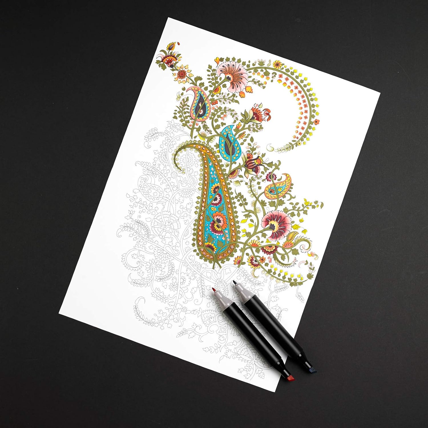 PEPIN Marker Colouring Books contain 16 sheets of superior acid-free bleedproof paper, printed with exciting and intricate designs. The printing is done in very light lines, so that the printed outline will not or hardly be visible after colouring. The 150 gsm paper is made to our specifications to be suitable for alcohol and non-alcohol based felt-tipped pens and all types of markers. However, other techniques can also be used. Paper from responsible sources, acid-free, colourfast and age resistant; the coloured sheets can be framed and displayed without the risk of rapid deterioration provided that high-quality, colourfast markers have been used.