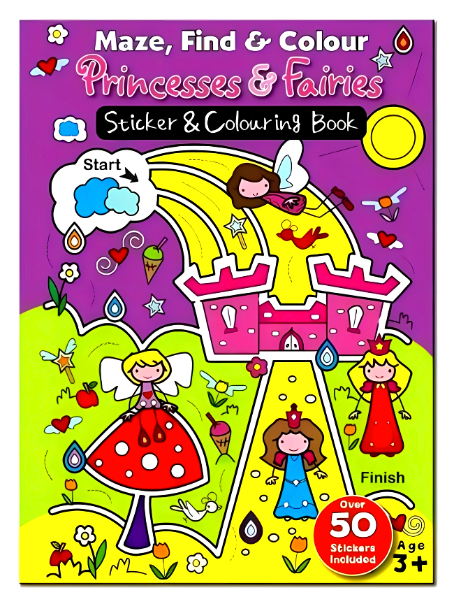 Maze Find & Colour Princess & Fairies Sticker & Colouring Book