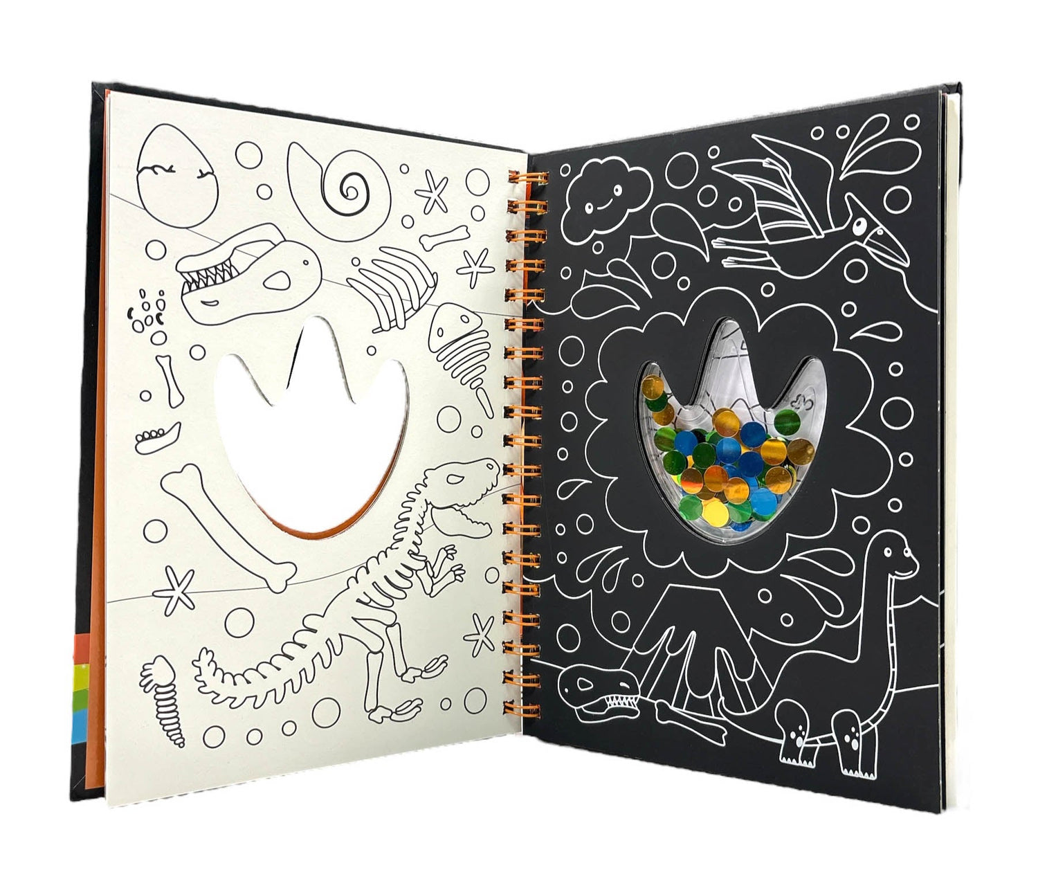 With sturdy double-sided pages you can use your wooden stylus to scratch away the black ink to fill the exciting scenes with beautiful colours and patterns, and then grab your brightest crayons to bring the colouring page on the reverse to life. Once you have finished scratching and customising your prehistoric world, you can then bring 20 pages of wild and roar-some colouring to life.