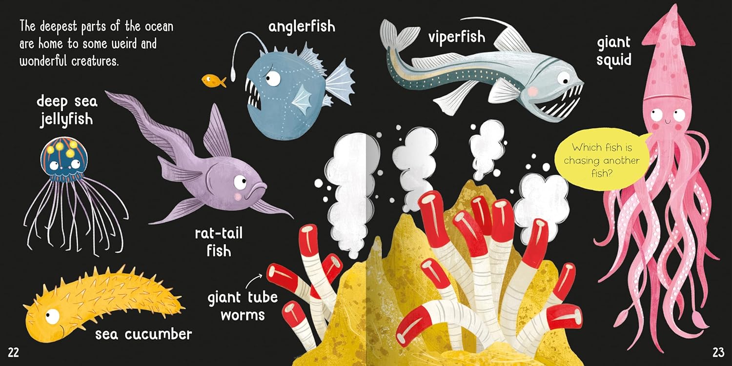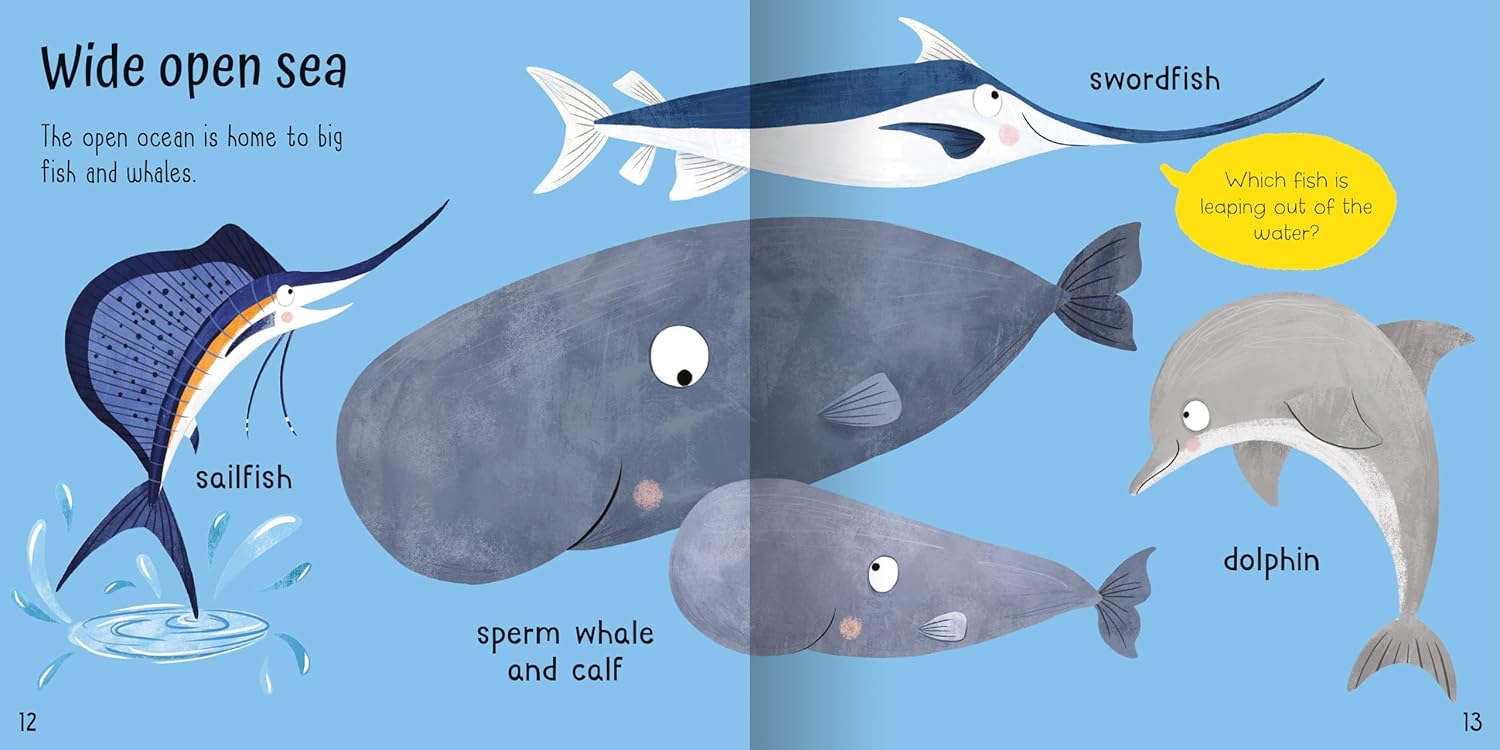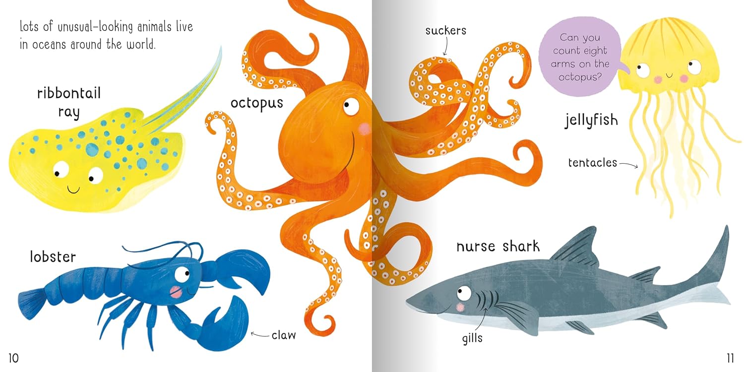 Little ones will love discovering the names of all the things they could see in the ocean with this delightful book of words. With lots to talk about on every page children will adore the brightness and detail in this book. Simple prompts and questions boost engagement and every object is clearly labelled to help build vocabulary and introduce new words. • Introduce children to a variety of ocean-related vocabulary • Themed pages explore familiar places and environments • Bright, engaging illustrations • Additional questions throughout help prompt little readers’ curiosity