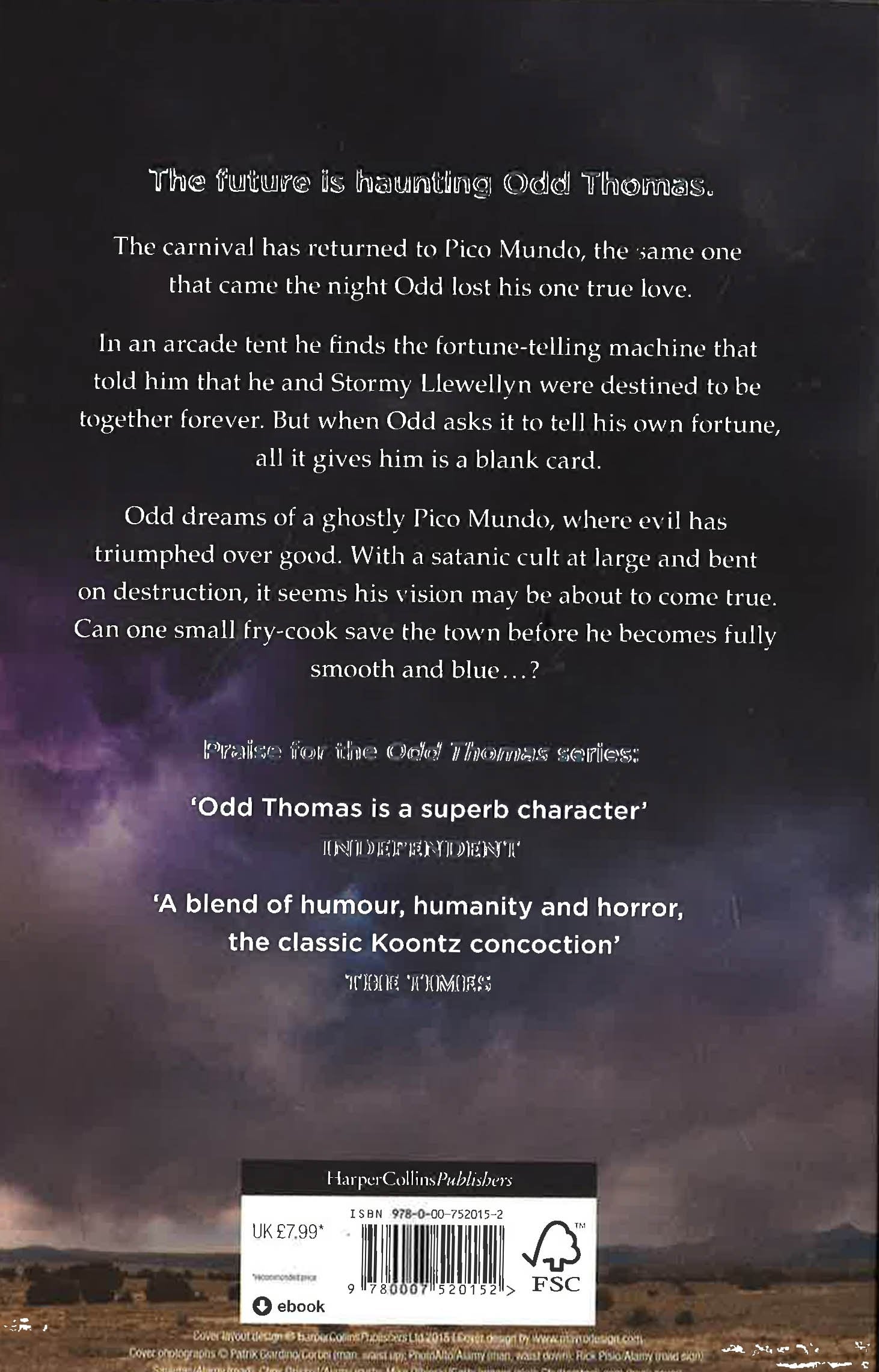 The seventh and final Odd Thomas thriller from the master storyteller. The future is haunting Odd Thomas. The carnival has returned to Pico Mundo, the same one that came to town when Odd was just sixteen. Odd is drawn to an arcade tent where he discovers Gypsy Mummy, the fortune-telling machine that told him that he and Stormy Llewellyn were destined to be together forever. But Stormy is dead and Pico Mundo is under threat once more. History seems to be repeating itself as Odd grapples with a satanic cult intent on bringing destruction to his town. An unseasonal storm is brewing, and as the sky darkens and the sun turns blood-red, it seems that all of nature is complicit in their plans. Meanwhile Odd is having dreams of a drowned Pico Mundo, where the submerged streetlamps eerily light the streets. But there's no way Pico Mundo could wind up underwater ...could it?