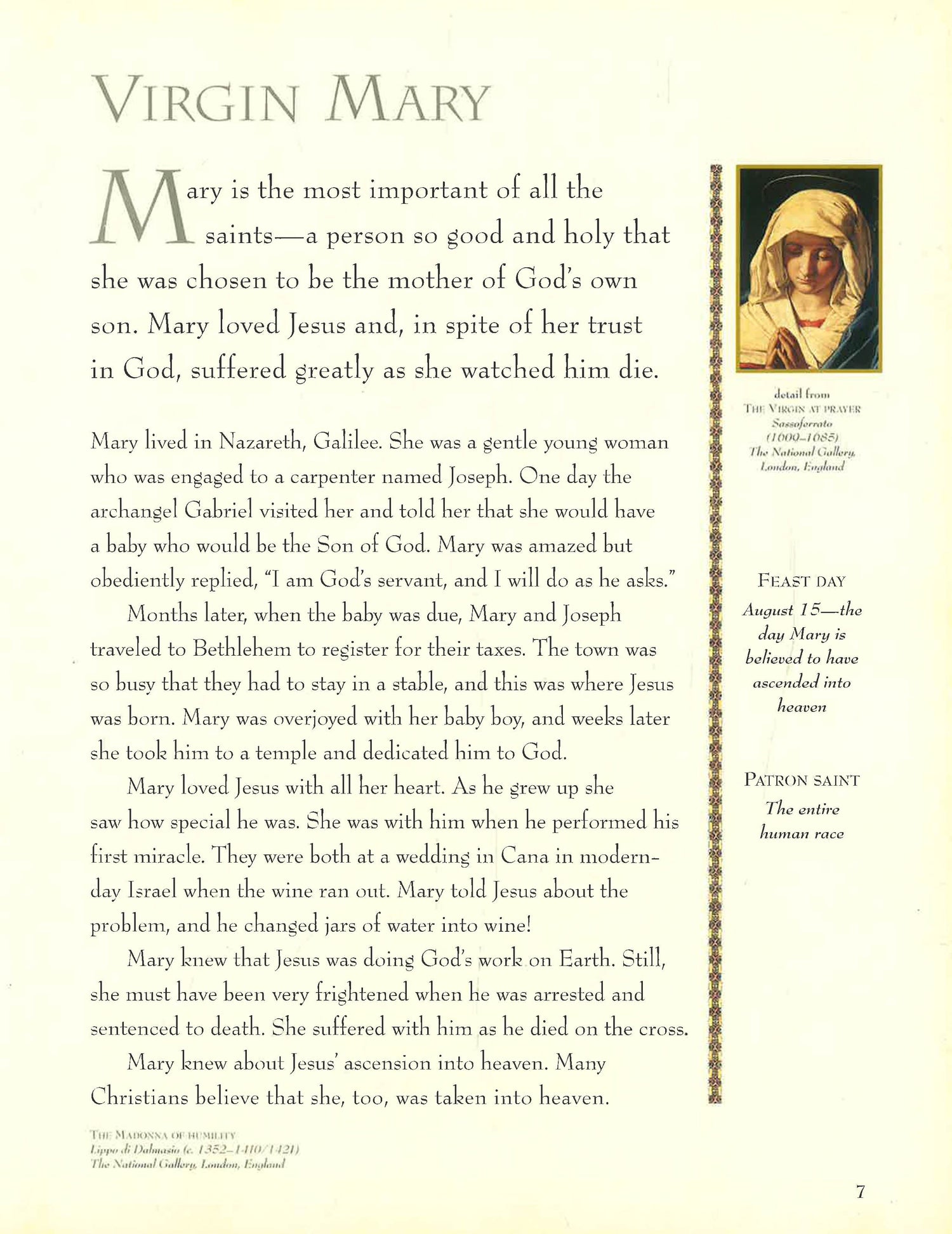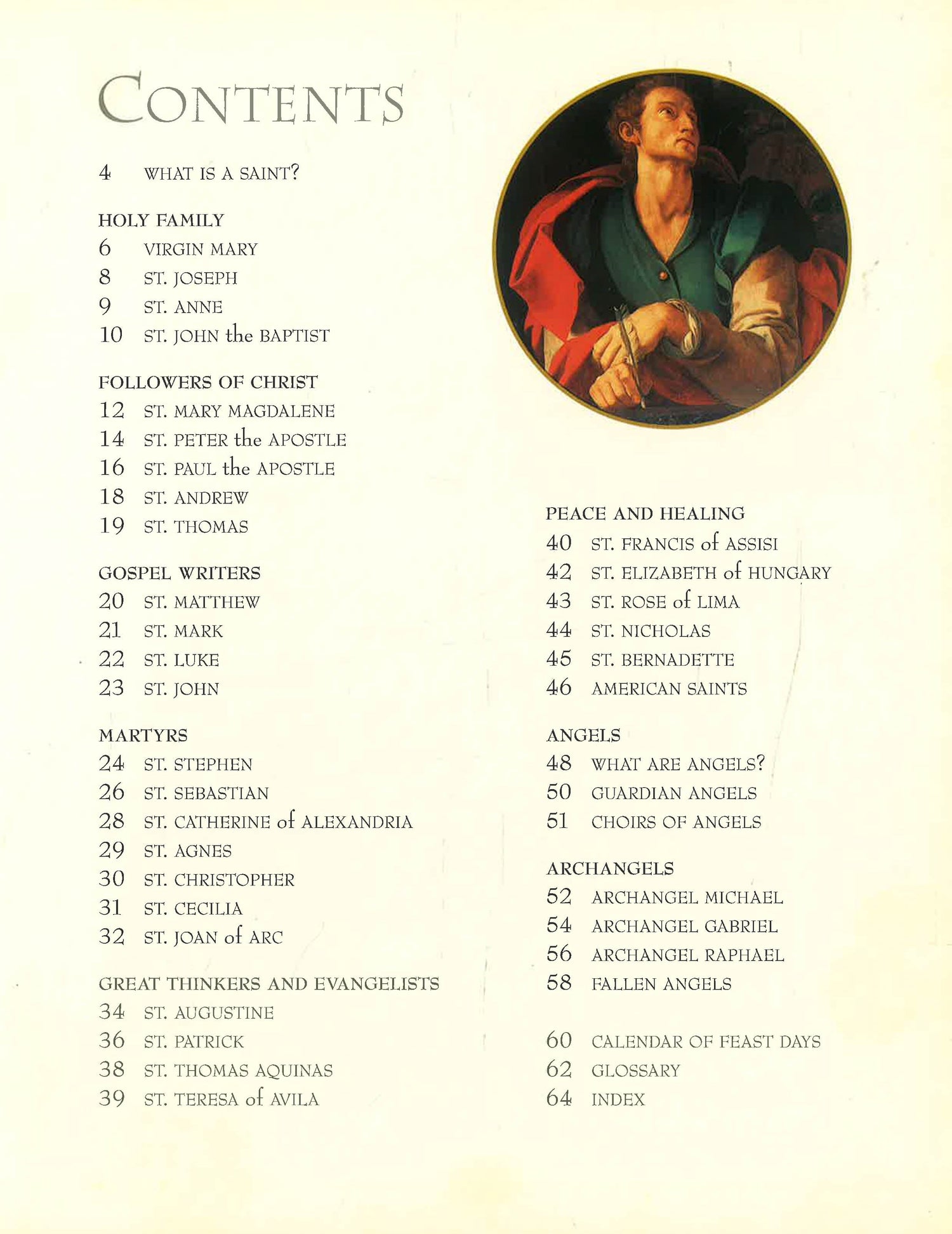 Richly illustrated with fine art, Saints and Angels describes the lives and works of many familiar and unfamiliar saints and angels. Among those included are the apostles, John the Baptist, Joan of Arc, and the first native-born American saint, Elizabeth Ann Bayley Seton. Details of feast days and patronages are also discussed. Coverage includes information about choirs of angels, guardian angels and fallen angels.