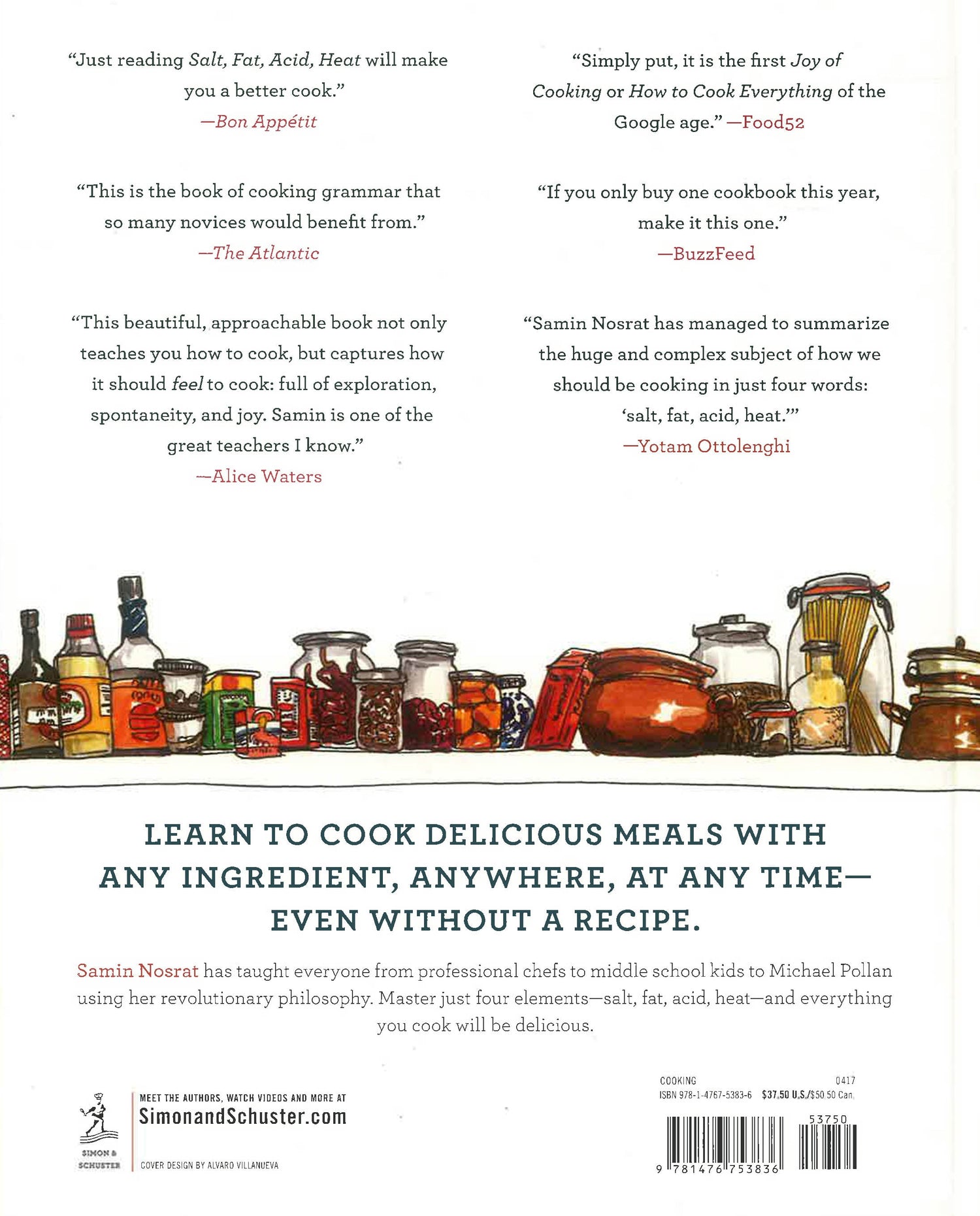 In the tradition of The Joy of Cooking and How to Cook Everything comes Salt, Fat, Acid, Heat, an ambitious new approach to cooking. Chef and writer Samin Nosrat has taught everyone from professional chefs to middle school kids to author Michael Pollan to cook using her revolutionary, yet simple, philosophy. Master the use of just four elements—Salt, which enhances flavor; Fat, which delivers flavor and generates texture; Acid, which balances flavor; and Heat, which ultimately determines the texture of food—and anything you cook will be delicious. By explaining the hows and whys of good cooking, Salt, Fat, Acid, Heat will teach and inspire a new generation of cooks how to confidently make better decisions in the kitchen and cook delicious meals with any ingredients, anywhere, at any time.