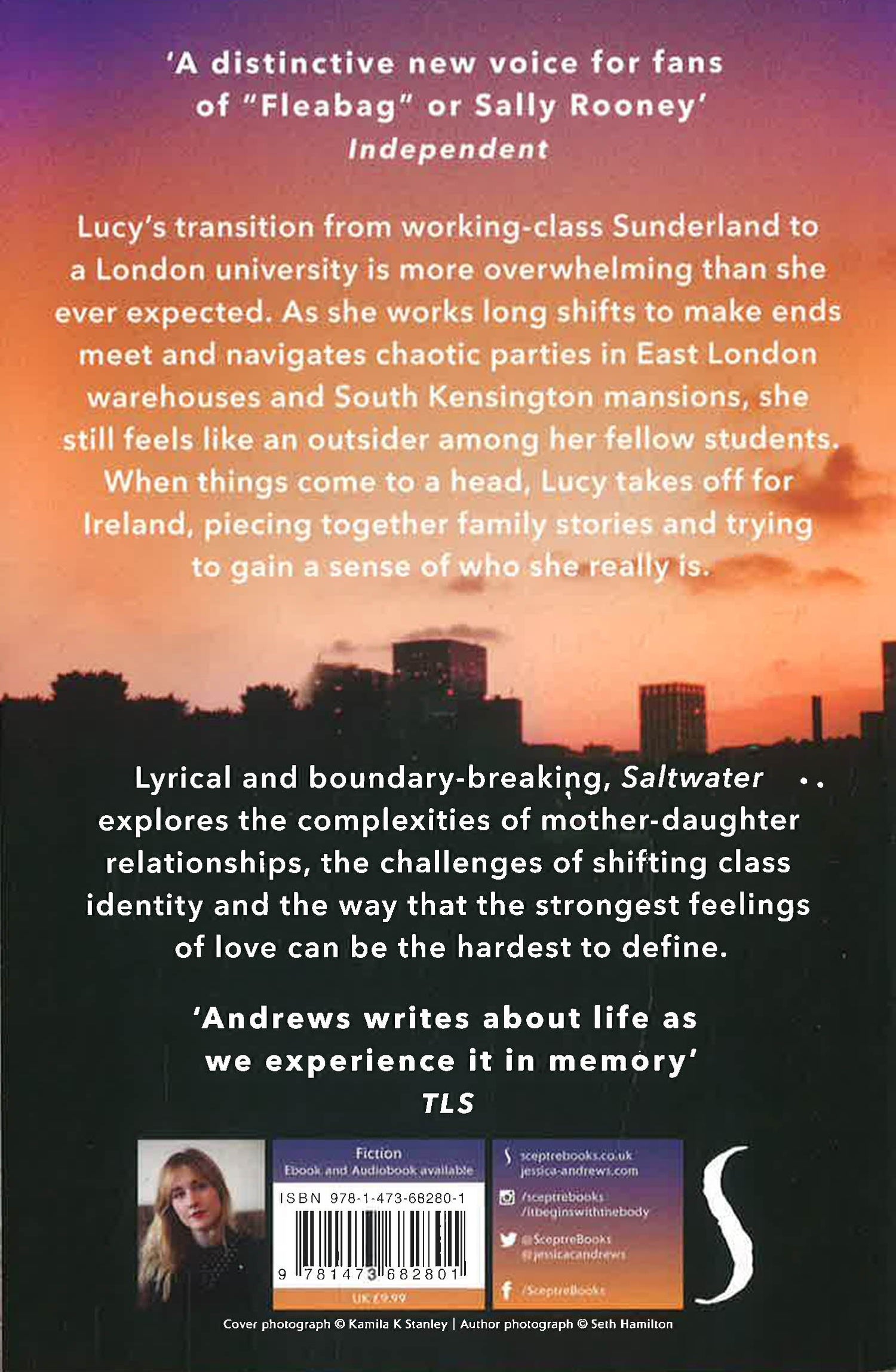 WINNER OF THE PORTICO PRIZE 'A distinctive new voice for fans of 'Fleabag' or Sally Rooney' Independent'Raw, intimate and authentic' The Sunday Times'Gorgeous . . . Andrews's writing is transportingly voluptuous, conjuring tastes and smells and sounds like her literary godmother, Edna O'Brien.' New York TimesWhen Lucy wins a place at university, she thinks London will unlock her future. It is a city alive with pop up bars, cool girls and neon lights illuminating the Thames at night. At least this is what Lucy expects, having grown up seemingly a world away in working-class Sunderland, amid legendary family stories of Irish immigrants and boarding houses, now defunct ice rinks and an engagement ring at a fish market. Yet Lucy's transition to a new life is more overwhelming than she ever expected. As she works long shifts to make ends meet and navigates chaotic parties from East London warehouses to South Kensington mansions, she still feels like an outsider among her fellow students. When things come to a head at her graduation, Lucy takes off for Ireland, seeking solace in her late grandfather's cottage and the wild landscape that surrounds it, wondering if she can piece together who she really is. Lyrical and boundary-breaking, Saltwater explores the complexities of mother-daughter relationships, the challenges of shifting class identity and the way that the strongest feelings of love can be the hardest to define.'Luminous' Observer'Lyrically poetic' Evening Standard'Disarmingly honest . . . I wish I had read this when I was 19.' Guardian
