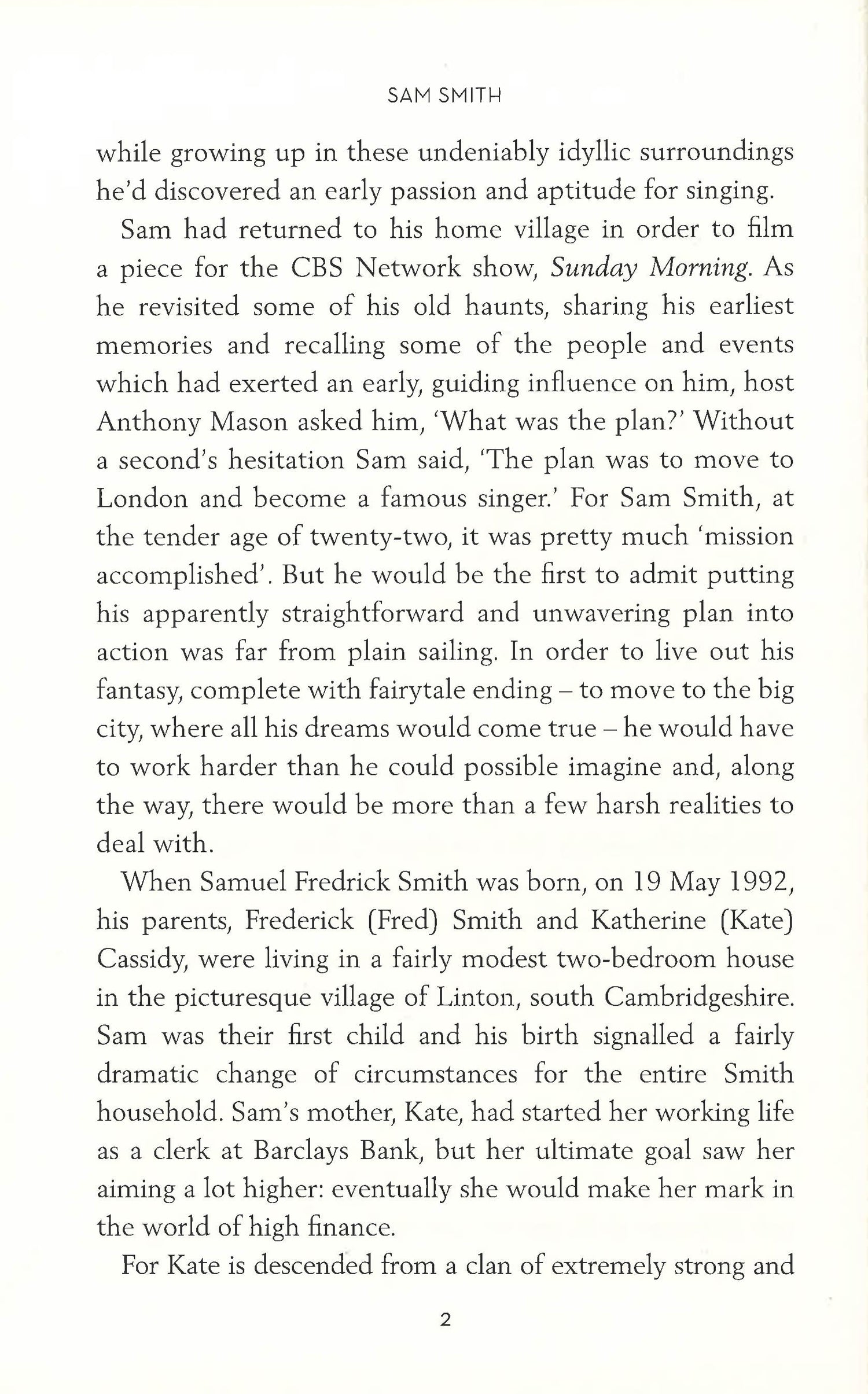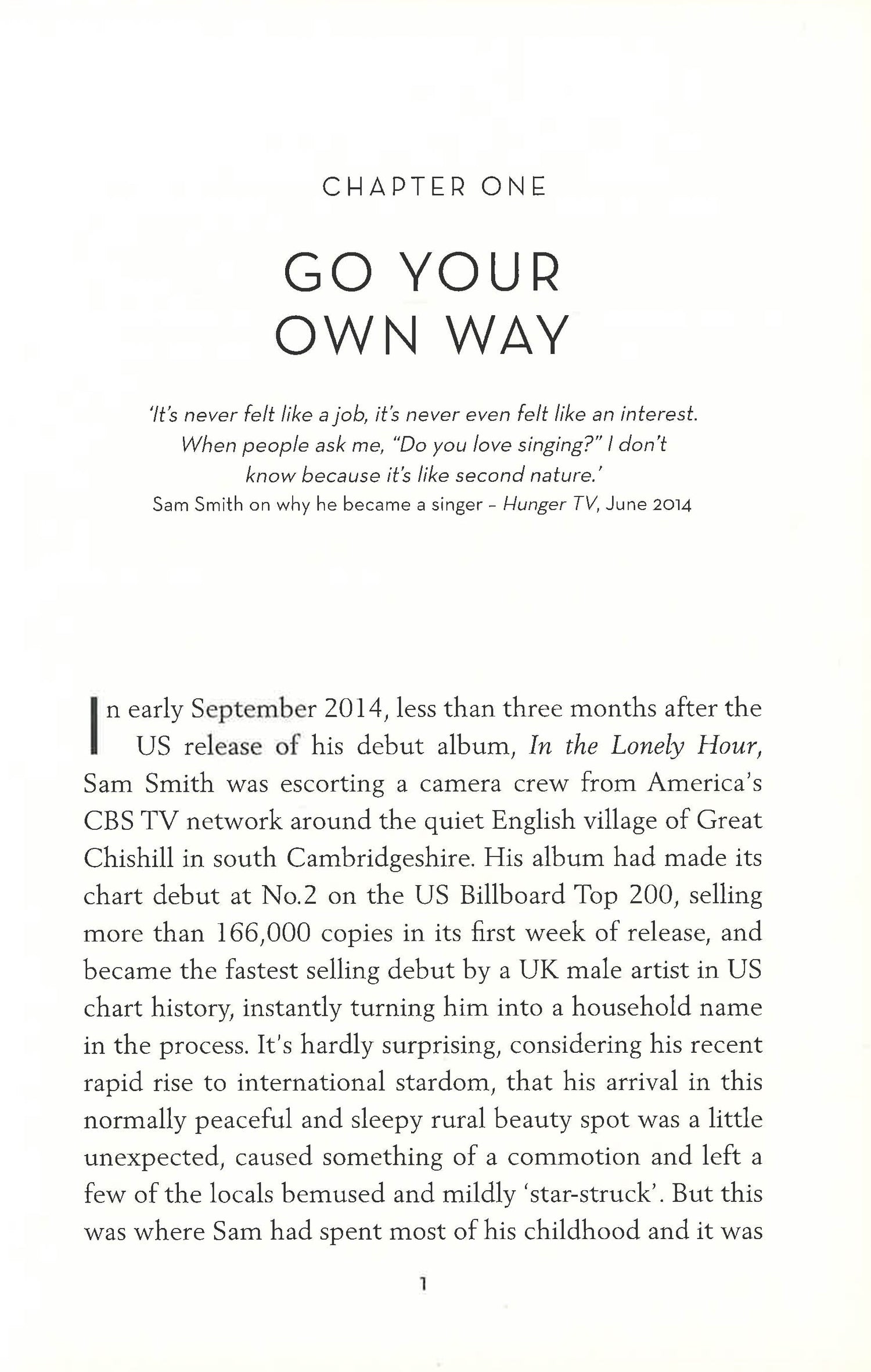 On the morning of 9 February 2014, when Sam Smith woke up and saw the four statuettes he'd taken home from the previous night's Grammy Awards Ceremony, it must have felt like a dream come true. At only twenty-two years old and coming just eight months after the US release of his debut album, In the Lonely Hour, calling Sam Smith's victory an 'overnight success story' seemed wholly appropriate. In fact, Sam had been working towards releasing his own music for over a decade and training his voice for even longer. After falling under the spell of Whitney Houston and Chaka Khan as a child, straining his voice to imitate them and match their incredible vocal ranges, tuition from a local jazz singer and time spent in a local theatre group and youth choir encouraged Sam to pursue singing as a career. But Sam's first attempts to become a professional singer floundered and left him disillusioned and jaded. By the time he turned eighteen, Sam had seen six different managers come and go, he'd recorded a whole album's worth of songs which were never released and he was beginning to think he'd never get his big break. Then in 2010, giving himself one more year to make it, Sam moved to London.
