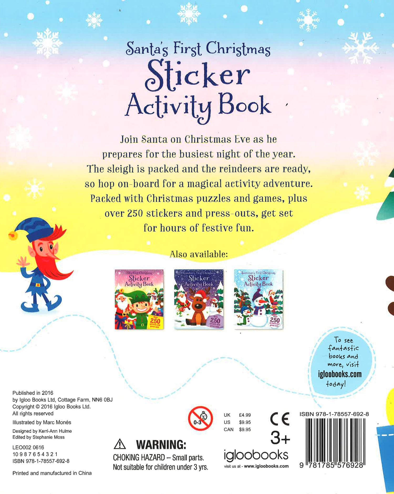 Join Santa on Christmas Eve as he prepares for the busiest night of the year. The sleigh is packed and the reindeers are ready, so hop on-board for a magical activity adventure. Packed with Christmas puzzles and games, plus over 250 stickers and press-outs, get set for hours of festive fun.