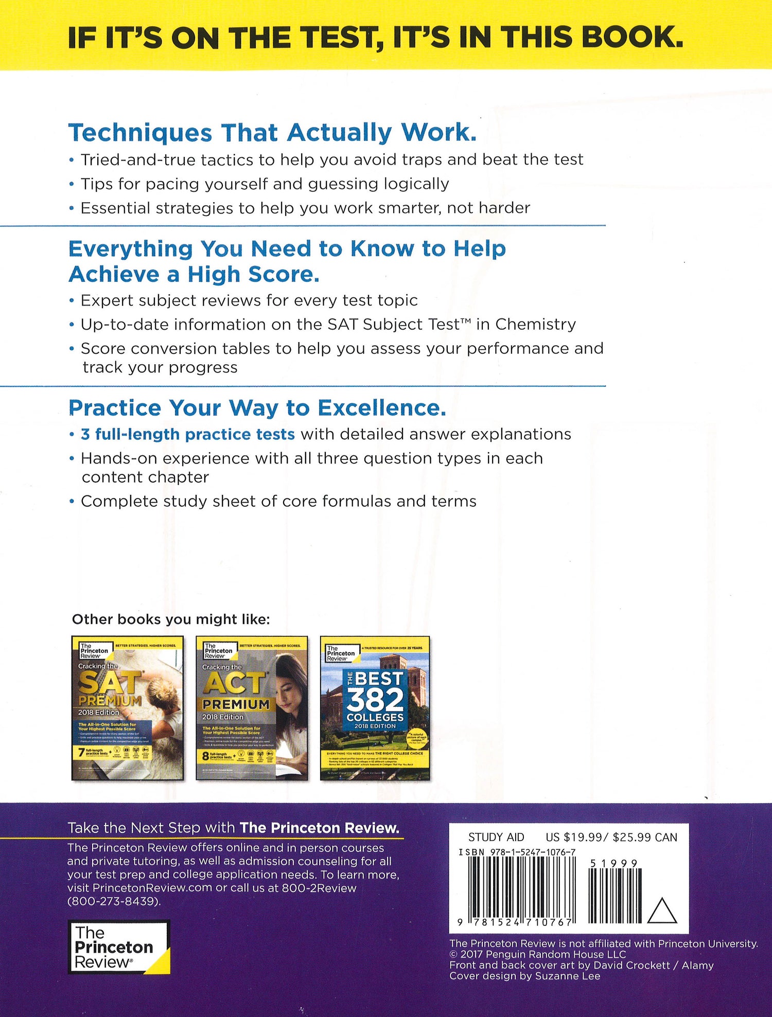 EVERYTHING YOU NEED TO HELP SCORE A PERFECT 800. Equip yourself to ace the SAT Subject Test in Chemistry with The Princeton Review's comprehensive study guide--including 3 full-length practice tests, thorough reviews of key chemistry topics, and targeted strategies for every question type. We don't have to tell you how tough SAT Chemistry is--or how helpful a stellar exam score can be for your chances of getting into your top-choice college. Written by the experts at The Princeton Review, Cracking the SAT Subject Test in Chemistry arms you to take on the test and achieve your highest score. Techniques That Actually Work.