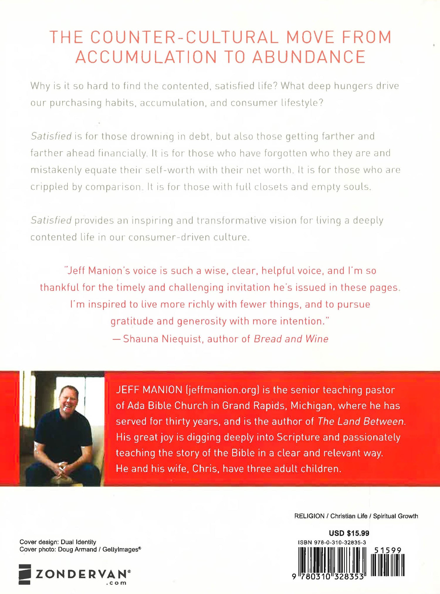Why is a contented, satisfied life so evasive? What deep hungers drive reckless purchasing habits, out of control accumulation, and crazy consumer lifestyle for so many people? And why are people often driven more by what their neighbors own than what will truly make them happy?Satisfied is for those drowning in debt, as well as those getting farther and farther ahead financially. It is for those who are crippled by comparison. Whose frame of reference is shaped by what they lack, rather than the blessings they possess. It is for those who have forgotten who they are, and mistakenly equate their self-worth with their net worth. It is for those with full closets and empty souls. In Satisfied, popular communicator and pastor Jeff Manion provides an inspiring and transformative vision for living a deeply contented life in the midst of a consumer-driven, materialistic, and often shallow culture. Satisfied draws richly from six passages of scripture, exploring the way in which these messages were received by the original readers and how these passages can alter people's views of wealth, accumulation, and ultimate contentment.