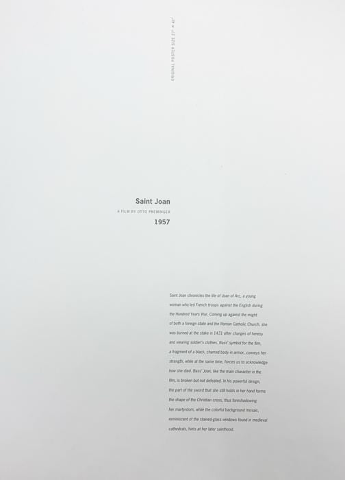 This collection of 20 iconic film posters by Saul Bass, one of the greatest American designers of the 20th century, is a must for graphic designers and film fans. Each poster is removable and designed to fit the standard frame size 12 x 16 inches. The posters included are: The Man with the Golden Arm; Saint Joan; Love in the Afternoon; Bonjour Tristesse; The Big Country; Vertigo; Anatomy of a Murder; Exodus; Spartacus; The Magnificent Seven; Advise & Consent; The Cardinal; In Harm's Way; Bunny Lake is Missing; Seconds; Grand Prix; The Fixer; Such Good Friends; The Shining; Schindler's List.