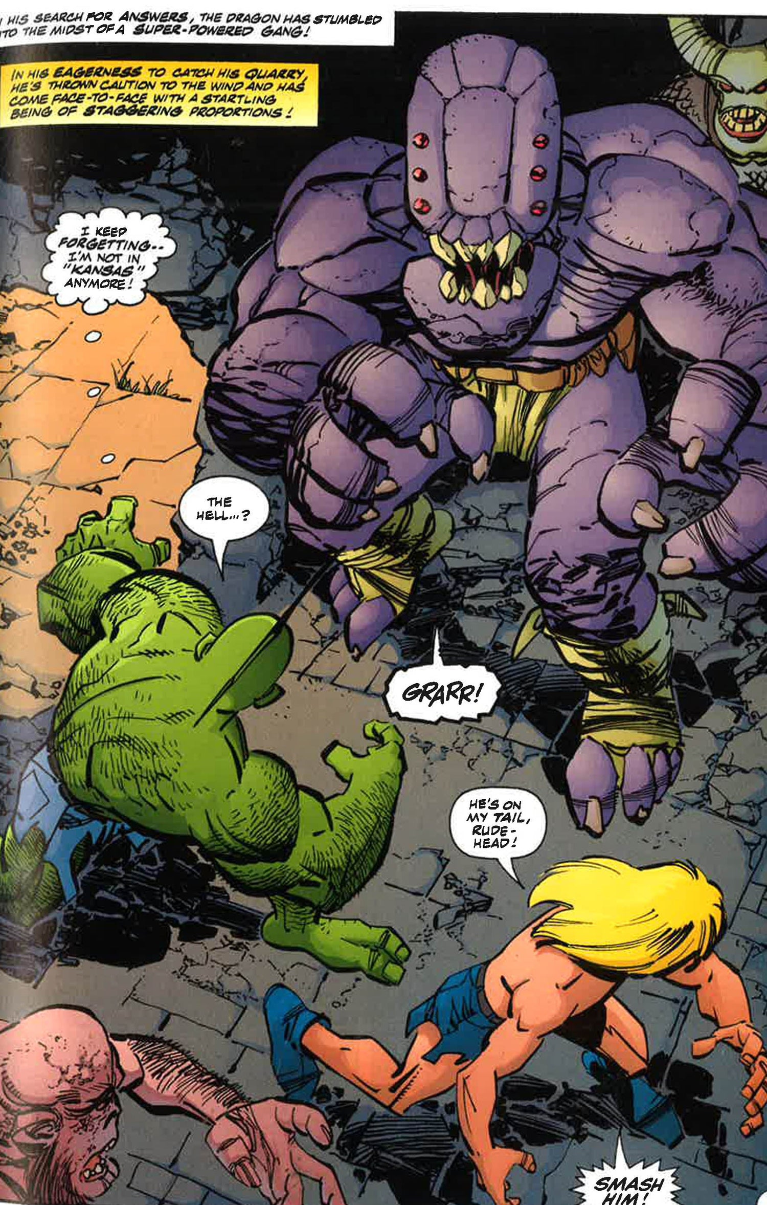 This book launches a bold new direction!Erik Larsen pays homage to the work of the legendary comic book creator Jack Kirby as he reinvents the very world in which the Dragon dwells. Dangerous monsters lurk around every corner in this fantastical world and the Dragon finds himself hunted and alone.