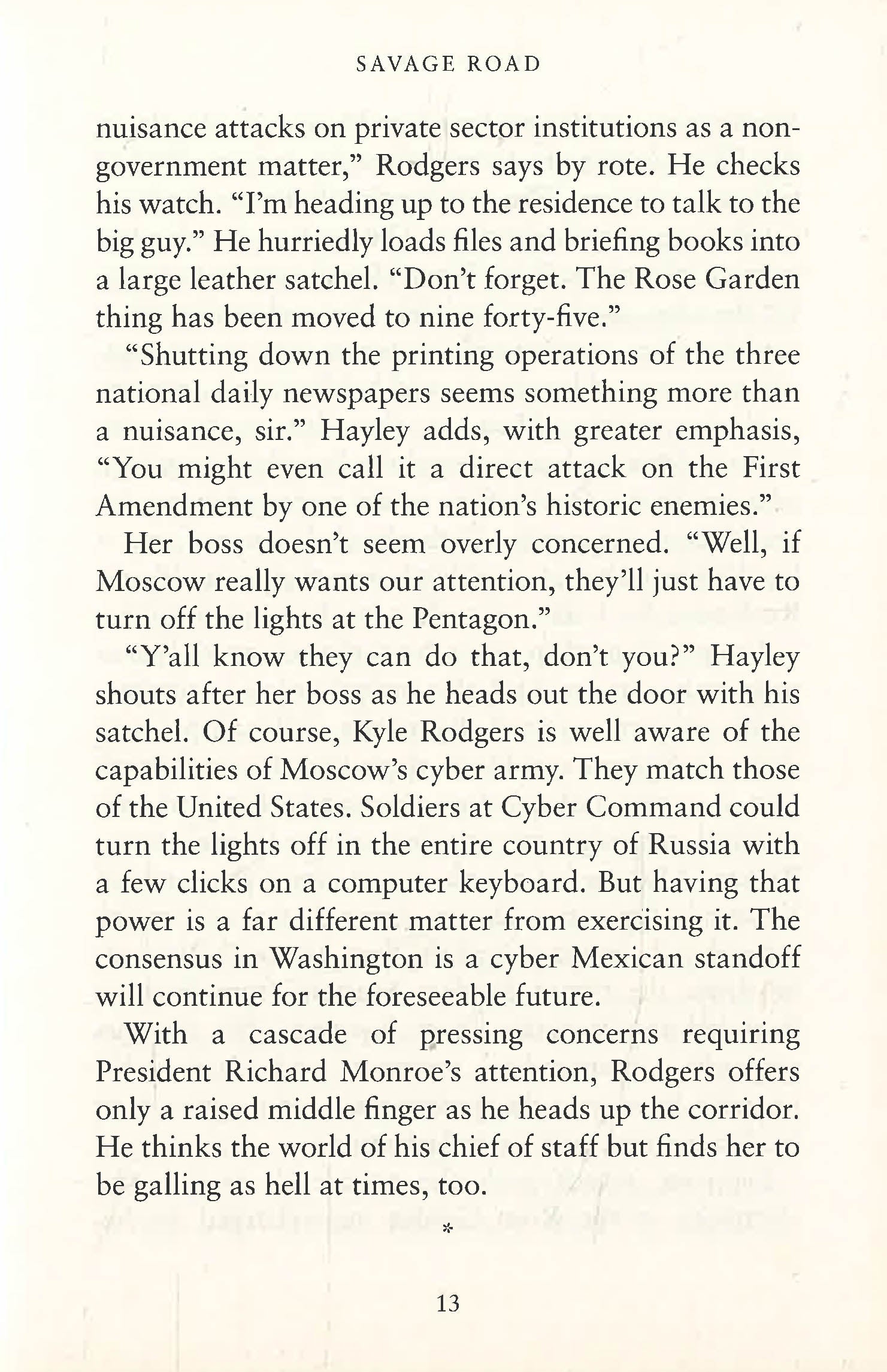 Savage Road is a political thriller of our time, perfect for fans of Gregg Hurwitz and Terry Hayes and series like The Bodyguard and Designated Survivor.