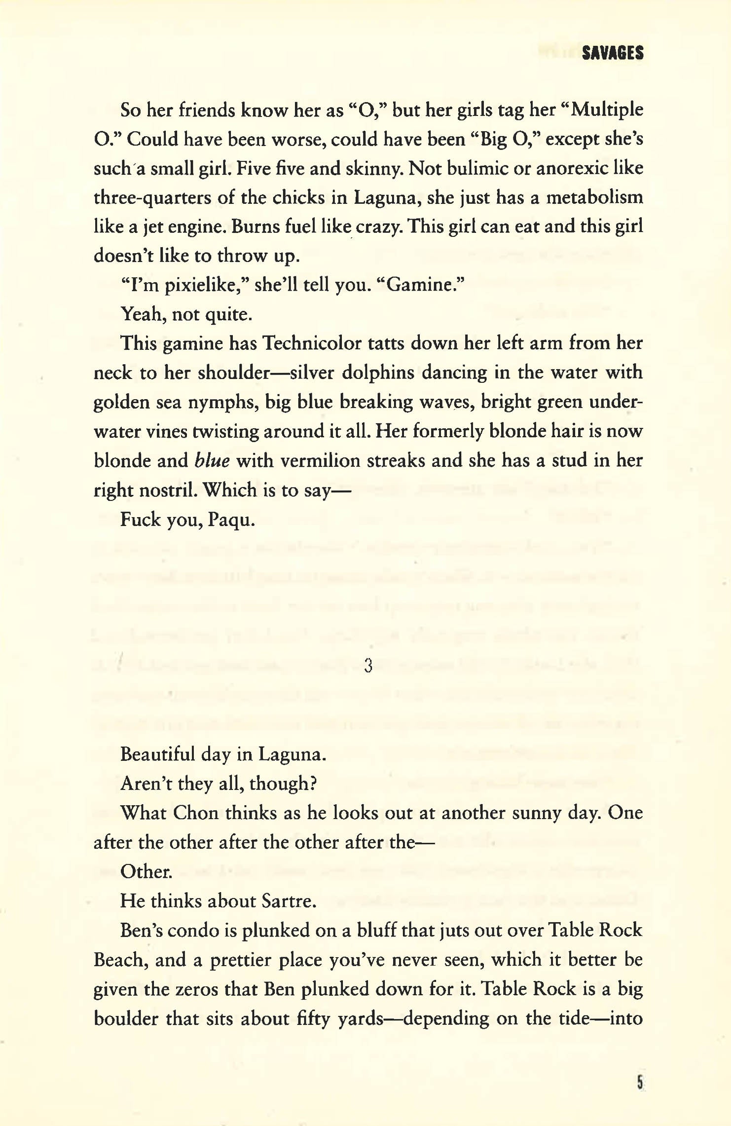 Part-time environmentalist and philanthropist Ben and his ex-mercenary buddy Chon run a Laguna Beach-based marijuana operation, reaping significant profits from their loyal clientele. When they refuse to back down, the cartel escalates its threat, kidnapping Ophelia, the boys' playmate and confidante. Part-time environmentalist and philanthropist Ben and his ex-mercenary buddy Chon run a Laguna Beach-based marijuana operation, reaping significant profits from their loyal clientele. In the past when their turf was challenged, Chon took care of eliminating the threat. But now they may have come up against something that they can't handle-the Mexican Baja Cartel wants in, sending them the message that a "no" is unacceptable. When they refuse to back down, the cartel escalates its threat, kidnapping Ophelia, the boys' playmate and confidante. O's abduction sets off a dizzying array of ingenious negotiations and gripping plot twists that will captivate readers eager to learn the costs of freedom. Savages is an adrenaline-fuelled novel by a master thriller writer at the very top of his game.
