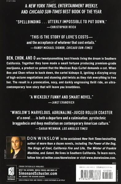 Ben, Chon, and O are twentysomething best friends living the dream in Southern California. Together they have made a small fortune producing premium grade marijuana, a product so potent that the Mexican Baja Cartel demands a cut. When Ben and Chon refuse to back down, the cartel kidnaps O, igniting a dizzying array of high-octane negotiations and stunning plot twists as they risk everything to free her. The result is a provocative, sexy, and darkly engrossing thrill ride, an ultracontemporary love story that will leave you breathless.