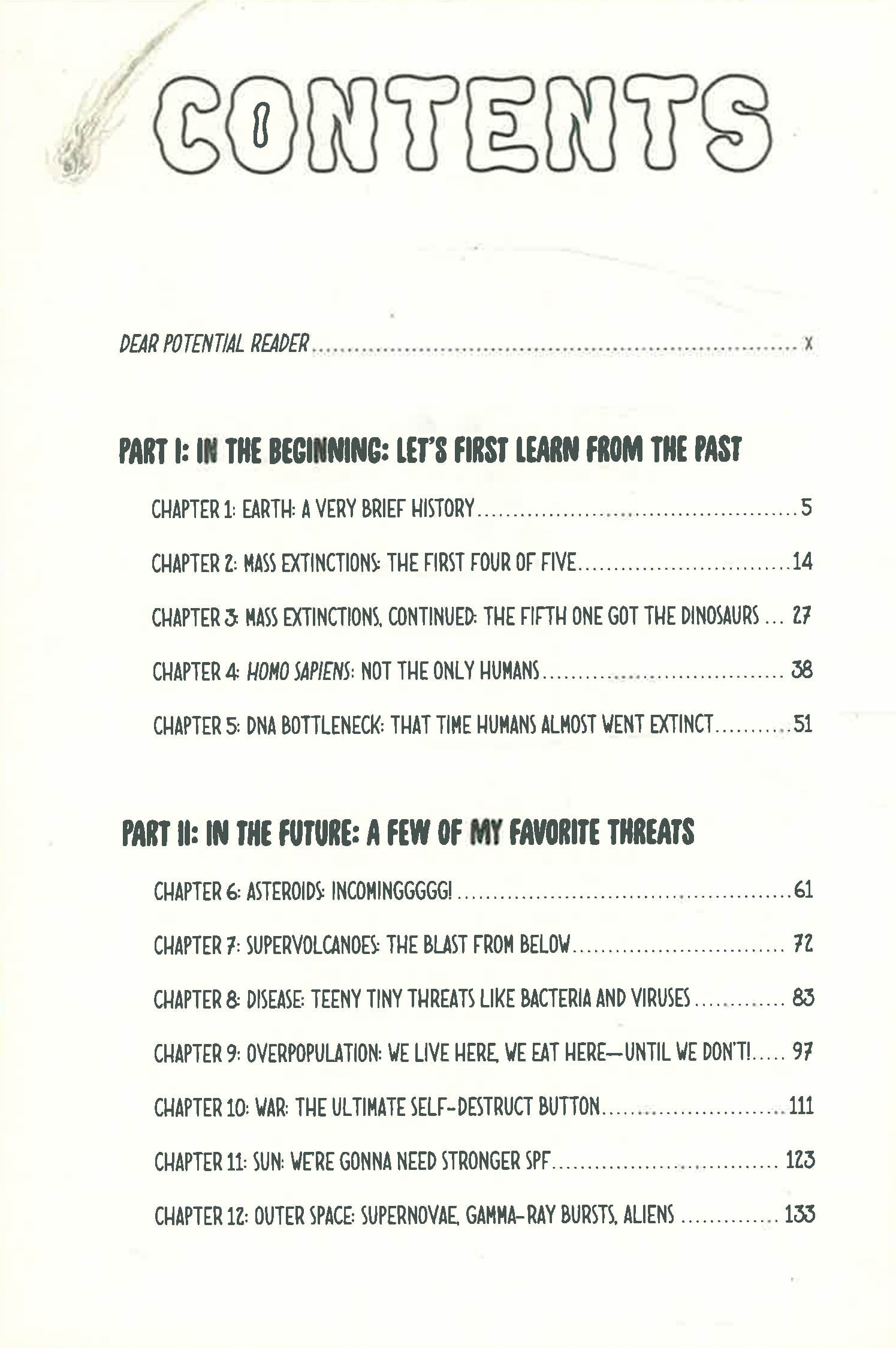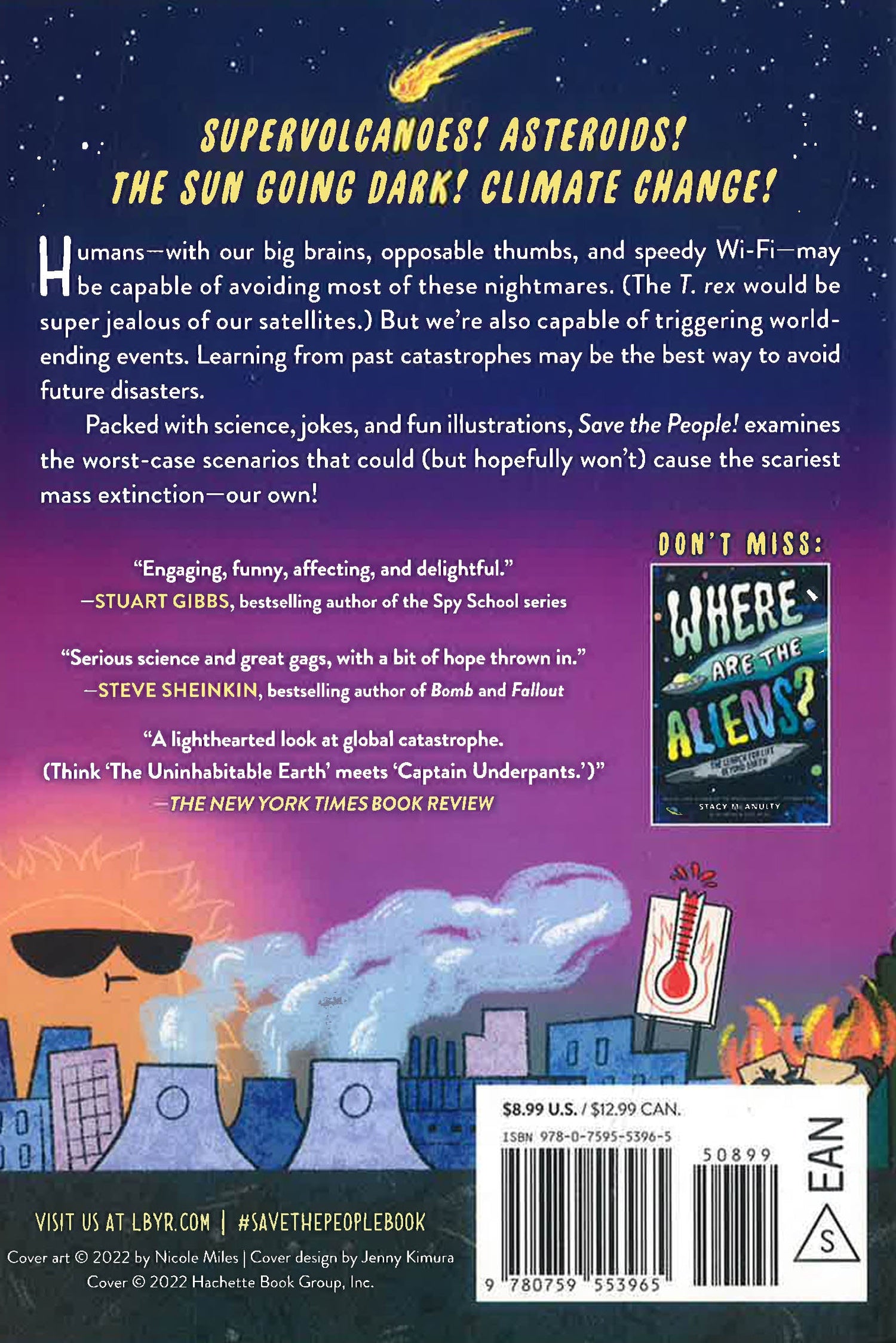 Packed with science, jokes, and black and white illustrations, Save the People! examines the worst-case scenarios that could (but hopefully won't) cause the greatest mass extinction--our own!