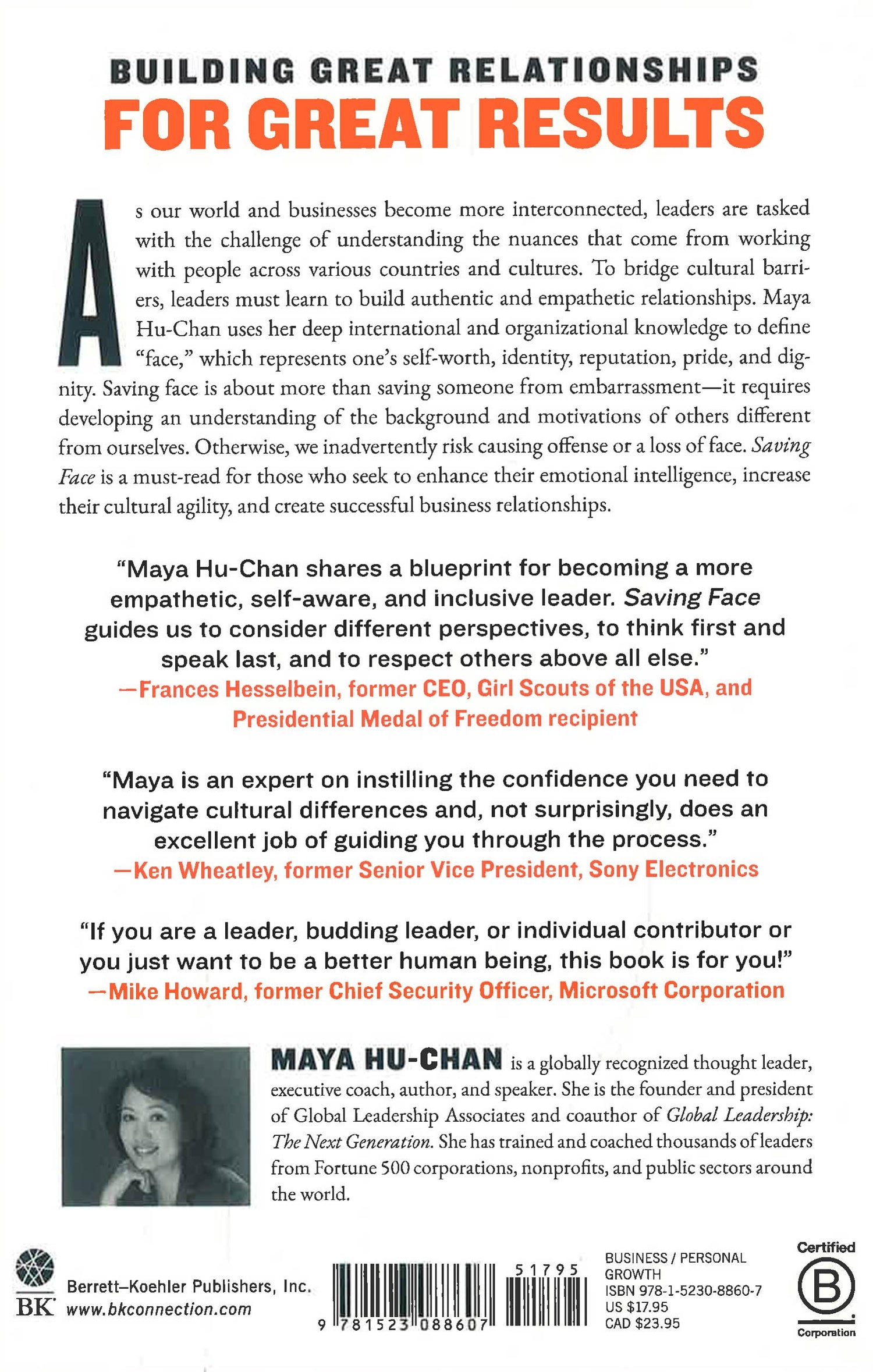 "Maya Hu-Chan shares a blueprint for becoming a more empathetic, self-aware, and inclusive leader. Saving Face guides us to consider different perspectives, to think first and speak last, and to respect others above all else."