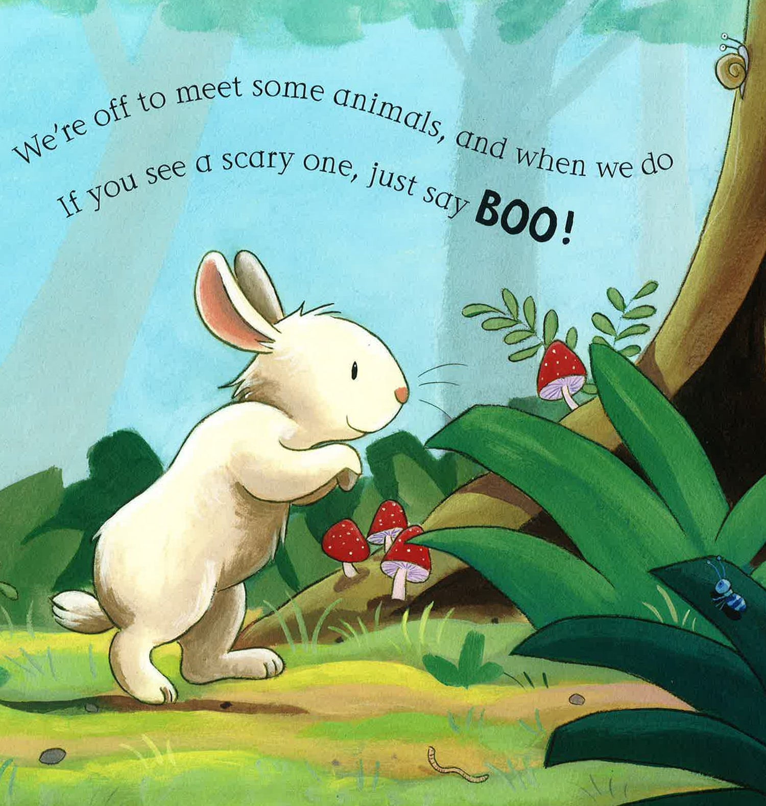 We're off to meet some animals, and when we do If you see a scary one, just say BOO! Join a little bunny as he plays a game of hide-and-seek with some of the scarier animals in the forest. The warty toad, the growly bear and the tiger look frightening at first, but he soon discovers there's no reason to be afraid. Bright, colourful artwork by Tim Warnes and a satisfying rhyming text written by Ian Whybrow make Say Boo to the Animals! perfect for sharing aloud. Stroke the soft-to-touch velvety animals and join in by calling out all the noises in the story: Croak! Grrr! Stamp! BOO!